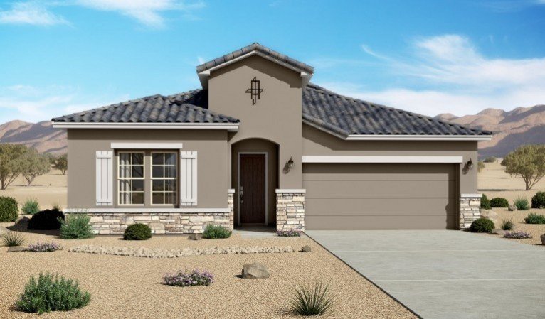The Santa Cruz floorplan at Lomas Encantadas Manor in Rio Rancho, New Mexico is a beautifully designed single-story home that delivers open concept living, private bedroom separation, and flexible space for today’s modern lifestyle. Located in one of Rio Rancho’s most desirable master-planned communities, this thoughtfully crafted home blends architectural flow with everyday functionality.