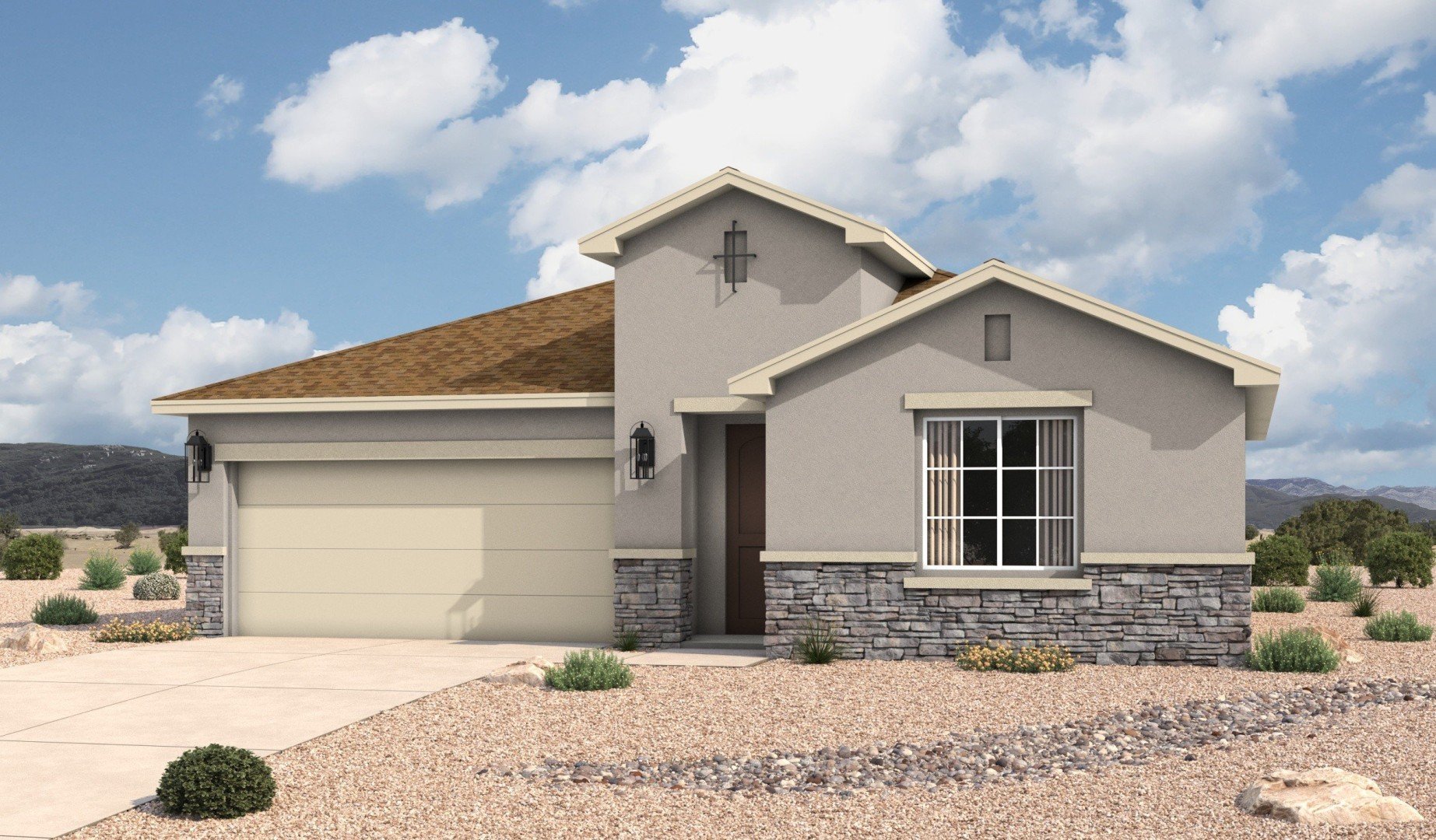Spanning a spacious and efficient design, the Santa Rosa welcomes you through a defined foyer entry that opens into an expansive great room, kitchen, and dining area, creating seamless flow for entertaining and everyday living. Large windows fill the space with natural light, enhancing the open feel and showcasing New Mexico’s signature sunshine.
