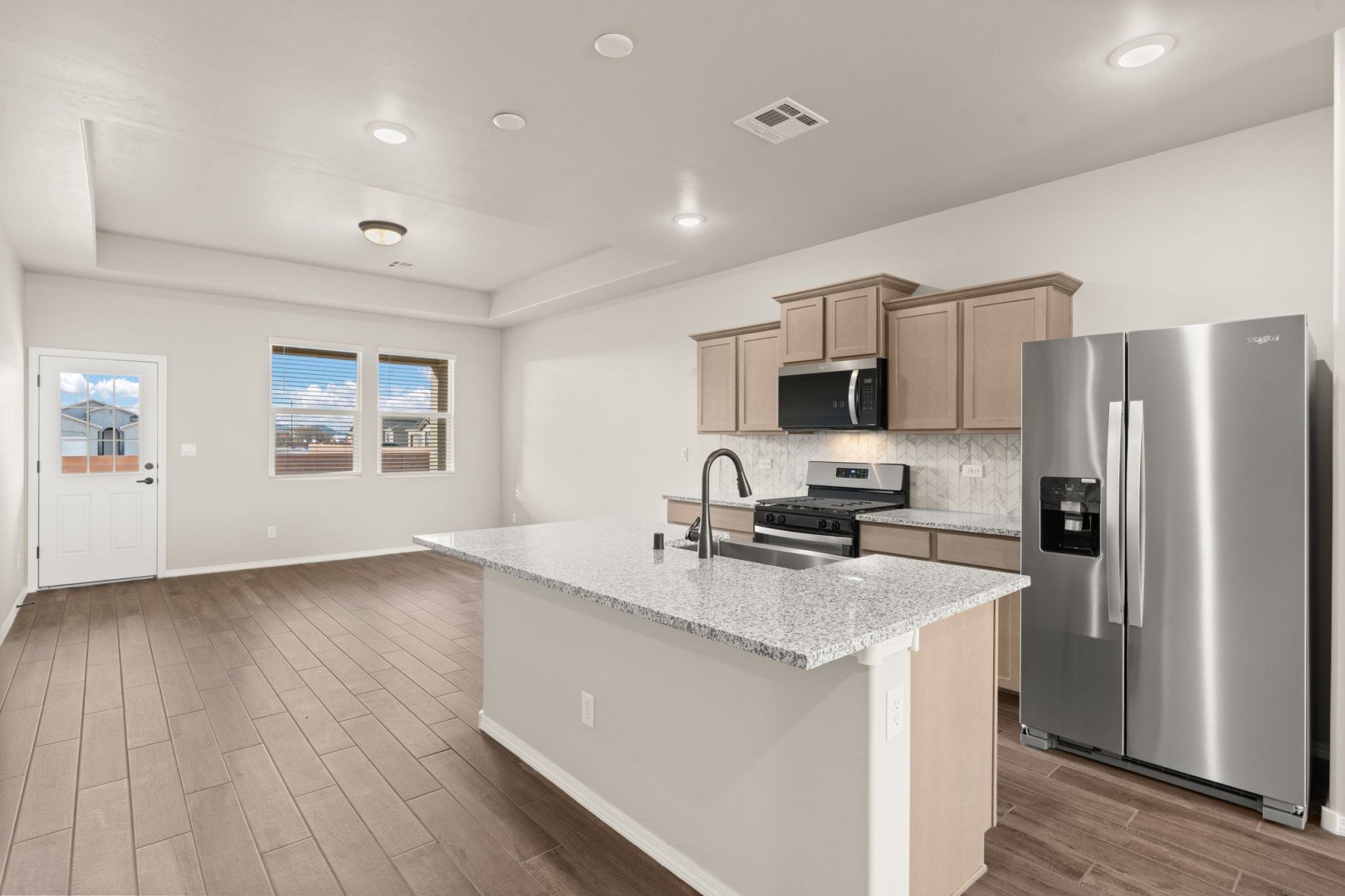 - Open-concept living, dining, and kitchen spaces for seamless everyday living and entertaining