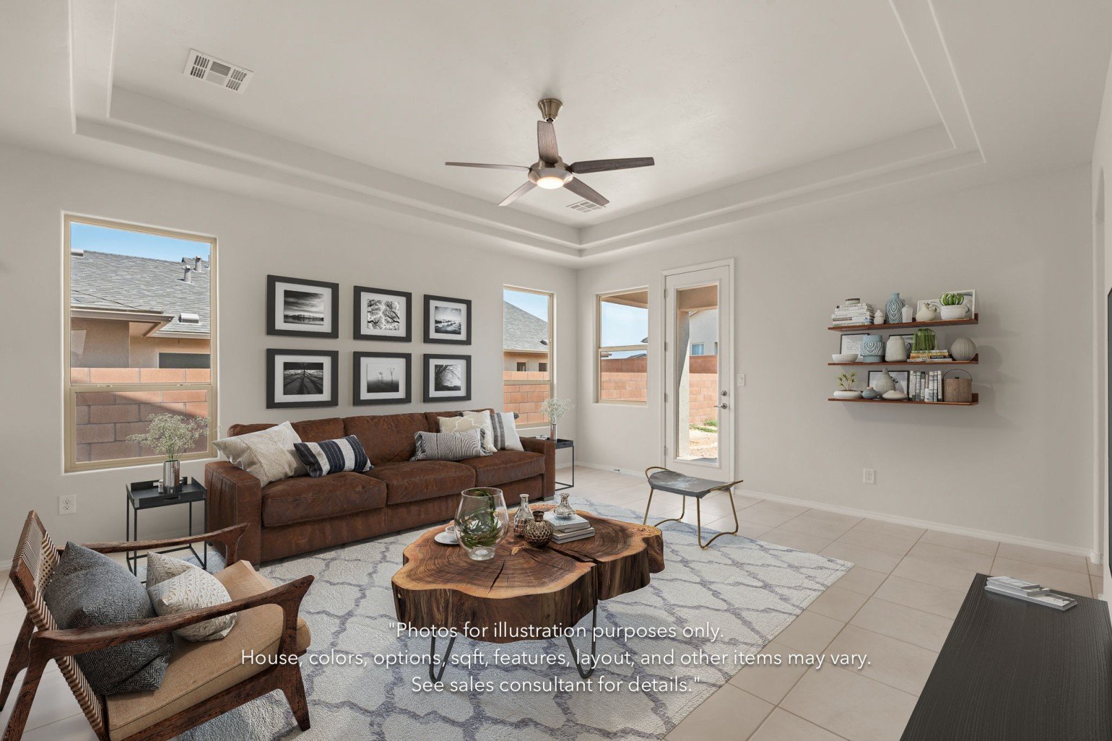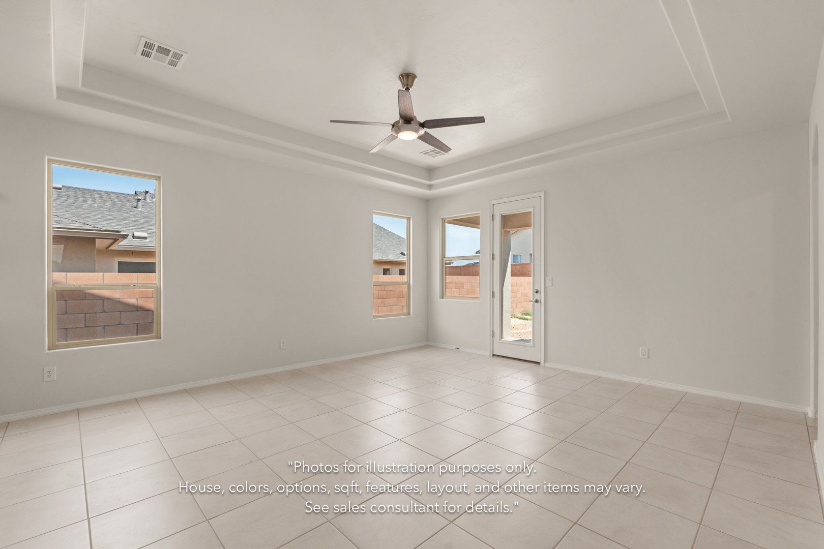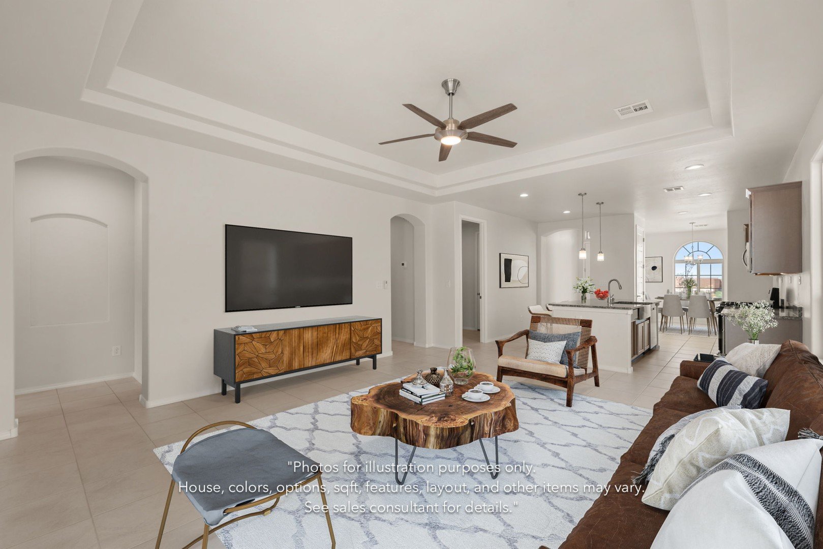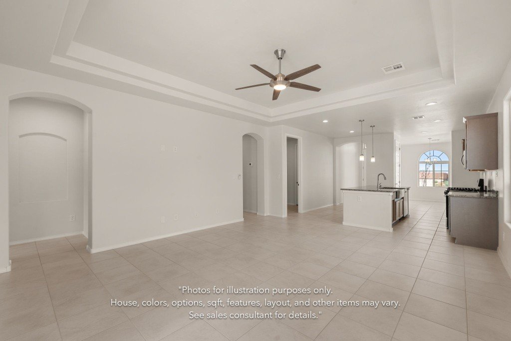 - Great room features a tray ceiling that highlights an abundance of natural light