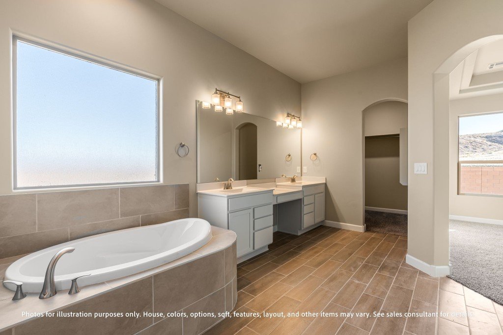 - Spacious master suite features a luxurious soaking tub, separate shower, private toilet room, and 2 large walk-in closets