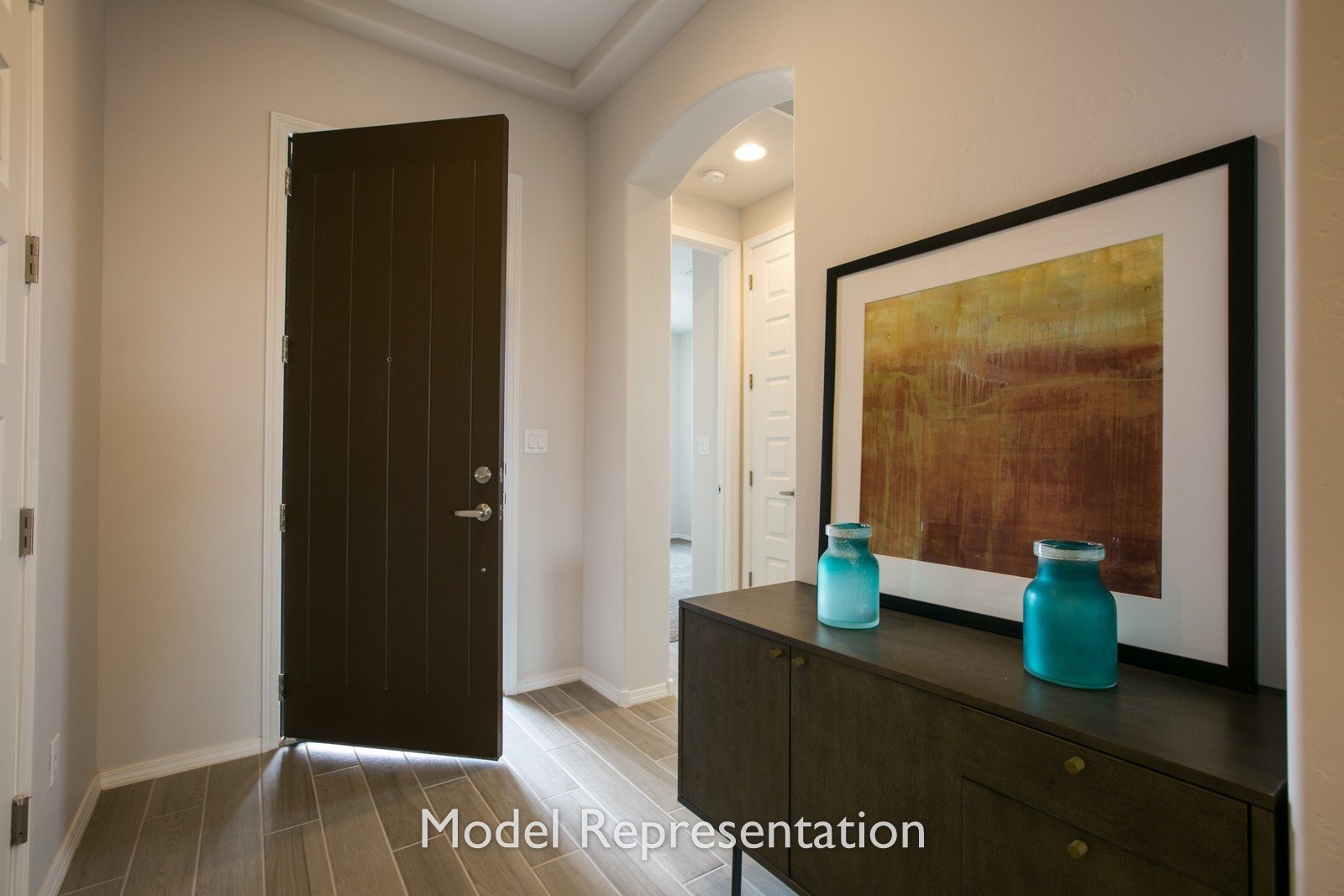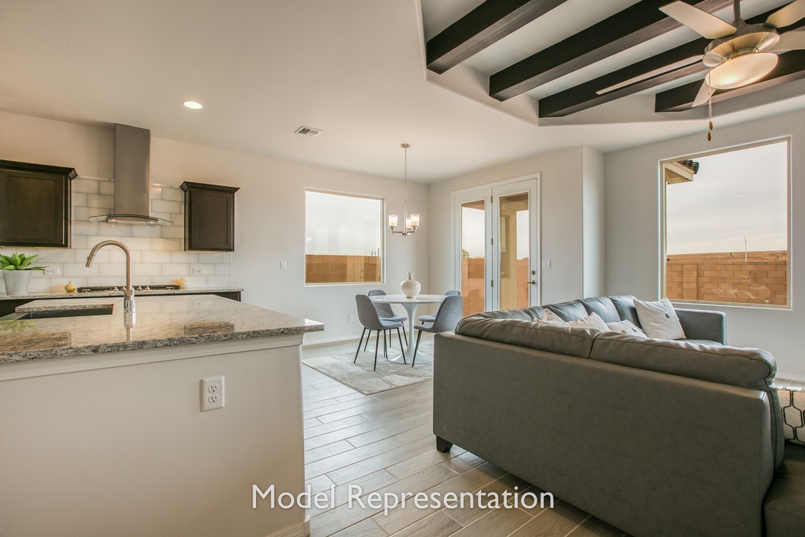 - Personalize your home with options such as a distinctive ceiling beam treatment in the great room, luminous 3-panel stacking door, gourmet kitchen, powder room for guests, and extended outdoor living areas