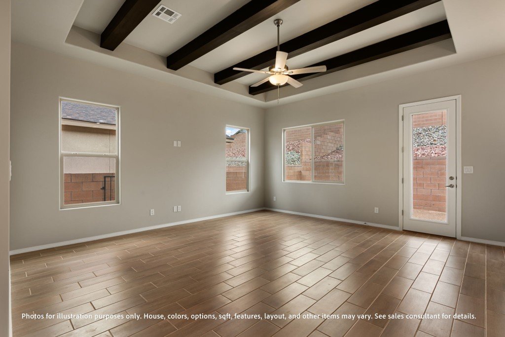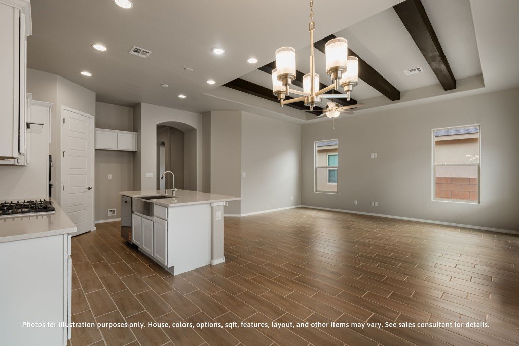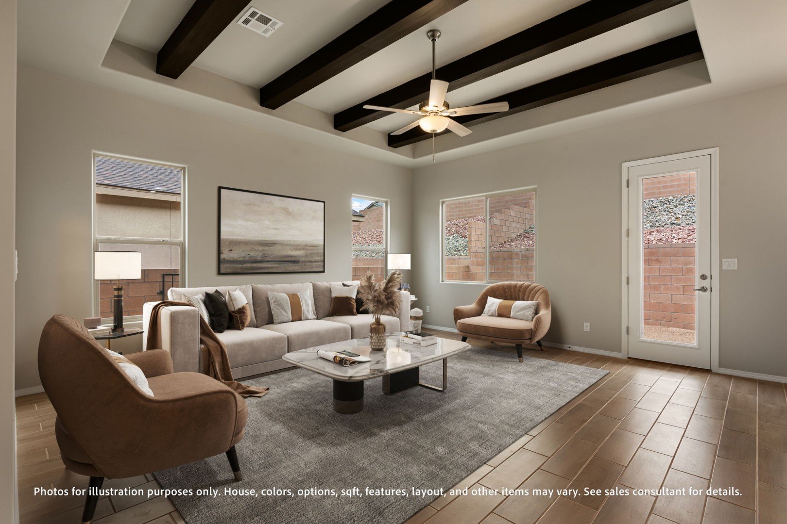 - The grand patio spans the great room and dining area, seamlessly blending indoor and outdoor living
