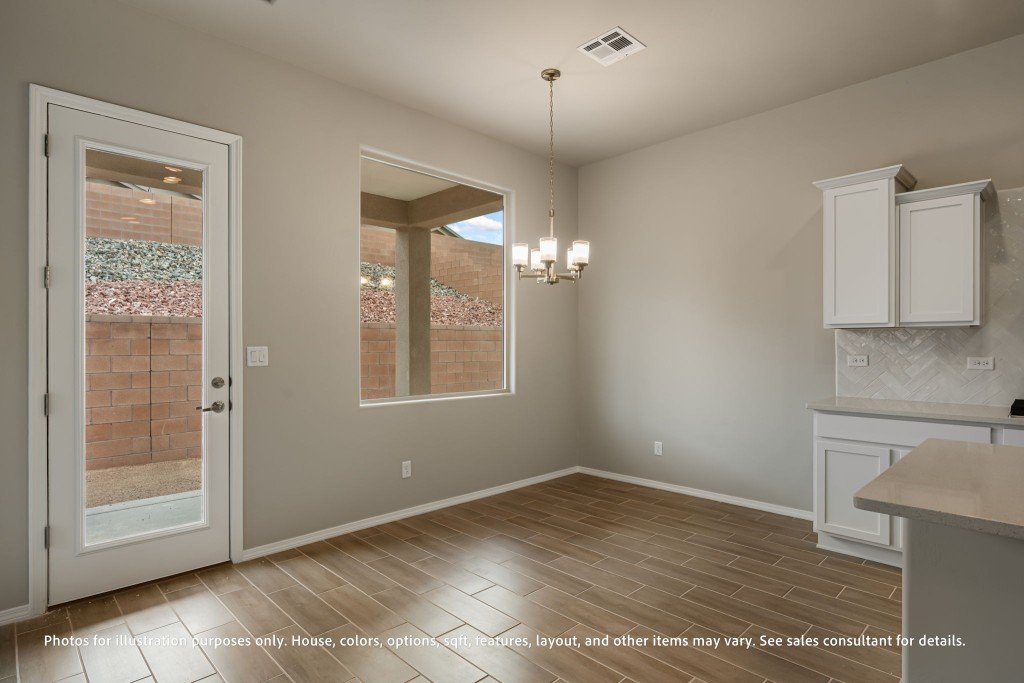 - Upgrades include stacking patio door, a spacious flex room for your ideal home office, and stylish tray ceilings in the owner's suite