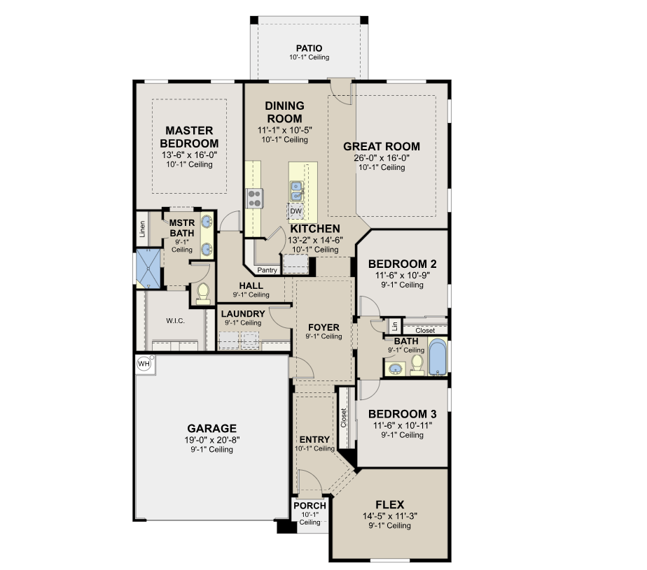 - Upgrades include stacking patio door, a spacious flex room for your ideal home office, and stylish tray ceilings in the owner's suite