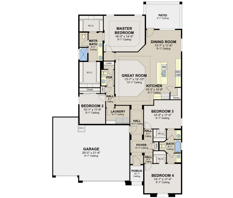 This functional home offers open spaces, private enclaves, and special appointments for your family's needs. With a spacious great room, generous master suite, unique Jack and Jill bath, and four walk-in closets, the innovative design includes something for everyone.