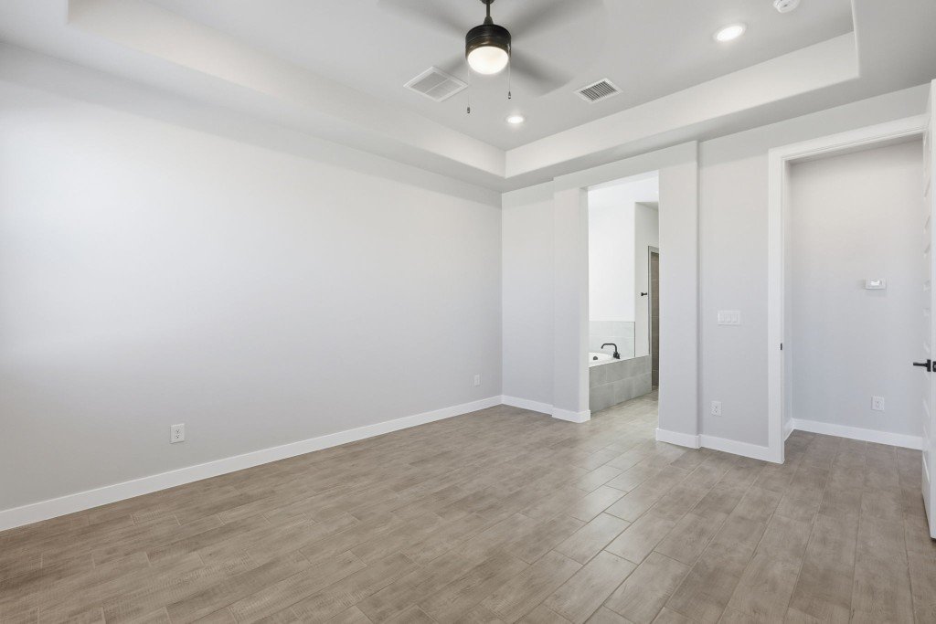 - Owners suite includes luxurious bathroom with dual vanity, relaxing soaking tub, standing shower, and roomy walk-in closet