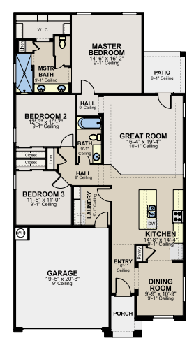 - Open-concept plan with 3 bedrooms, 2 bathrooms, and a 2-car garage