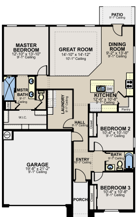 - Inviting entryway opens to a spacious kitchen, great room, and dining space