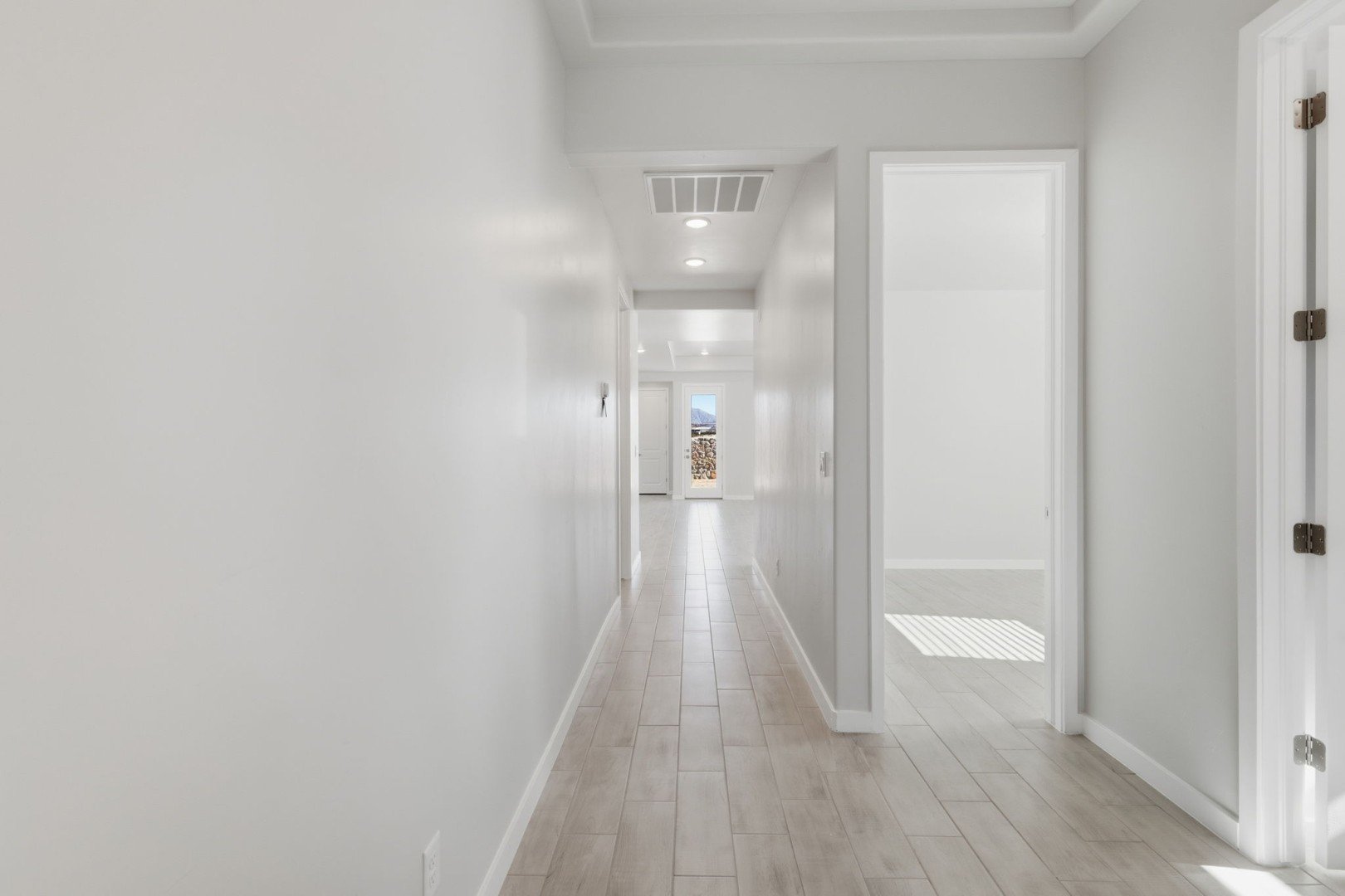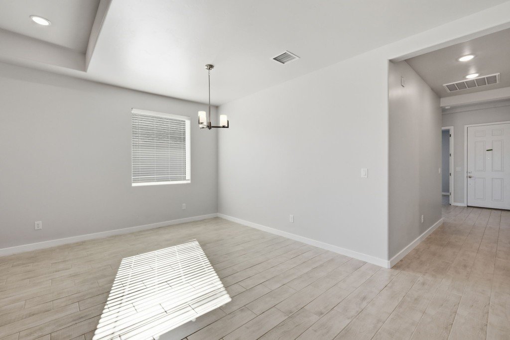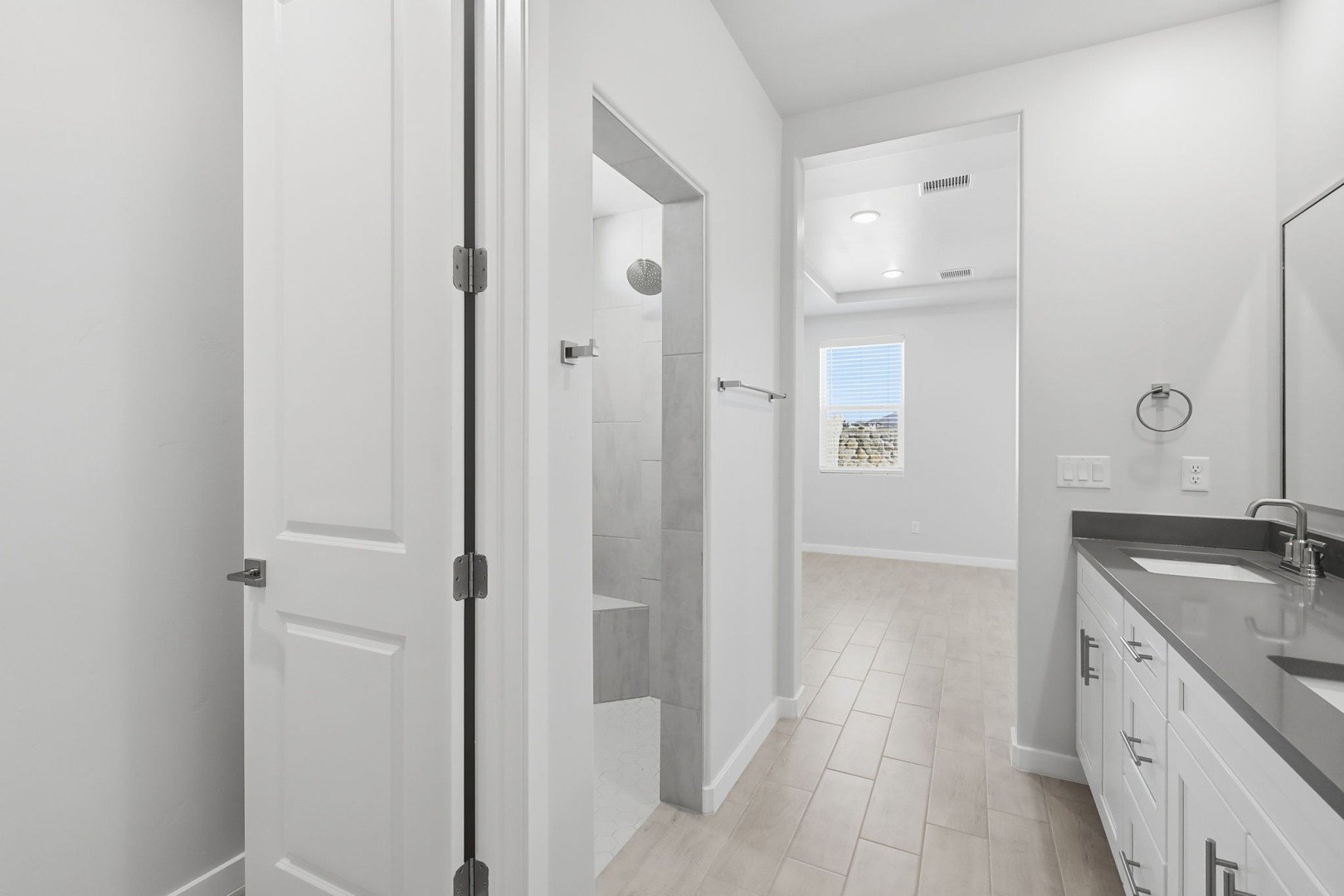 Discover the perfect blend of comfort and style with the Duranta, a thoughtfully designed single-story floor plan that combines modern elegance with practical living spaces. From the inviting front porch, step into a spacious open-concept layout where the kitchen, dining area, and great room flow effortlessly together, creating a bright and welcoming environment ideal for both daily living and entertaining. The kitchen is equipped with sleek countertops, a large island for meal preparation and casual dining, and a walk-in corner pantry offering plenty of storage. The dining area is conveniently situated for both intimate meals and larger gatherings, while the great room is filled with natural light, providing a cozy and inviting atmosphere. The primary bedroom, located at the rear of the home for added privacy, serves as a peaceful retreat, complete with a spa-inspired ensuite featuring dual vanities, a walk-in shower, and a generously sized walk-in closet. Two additional bedrooms, located at the front of the home, provide privacy and are ideally located near a shared full bathroom. Additional features of the Duranta include a centrally located laundry room and a two-car garage with plenty of storage space to meet your needs.