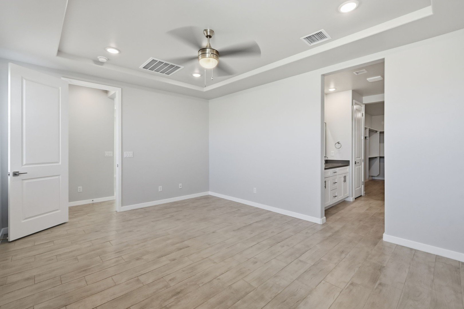 - Luxurious primary suite is secluded off a private hallway, creating a true owner’s retreat