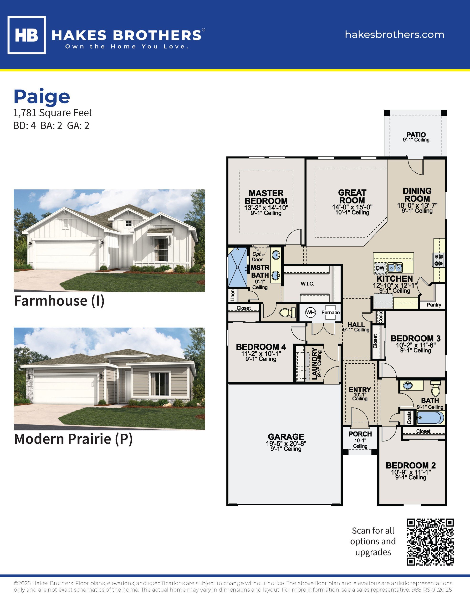The floorplan images provided are for illustrative purposes only and may not represent the exact layout, dimensions, or features of an available home. All square footage and room dimensions are approximate and vary by elevation. Prices, plans, features, and options are subject to change without notice. See Sales Representative for details.