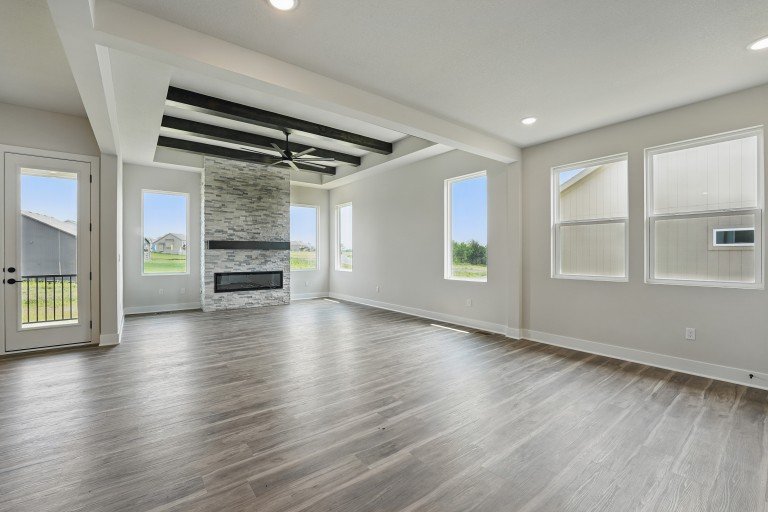- Sophisticated tray ceilings in the great room add a touch of refinement, while large windows ensure a bright, inviting atmosphere throughout the home