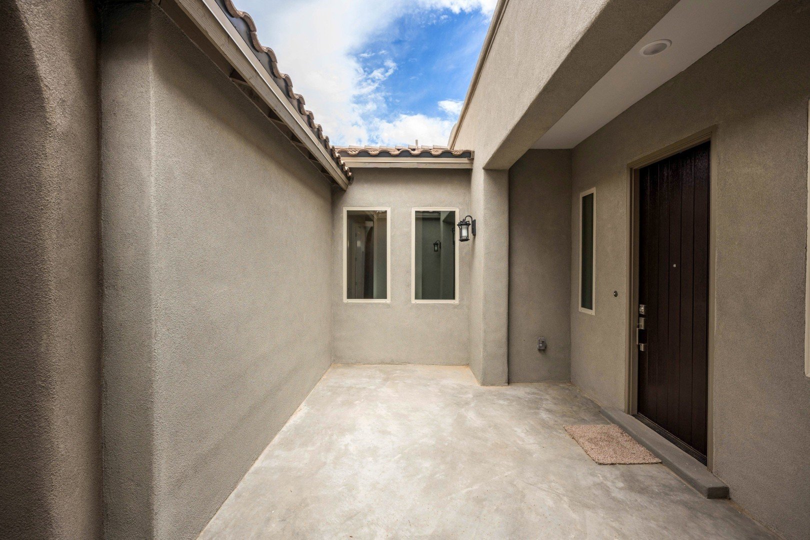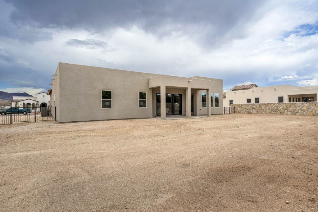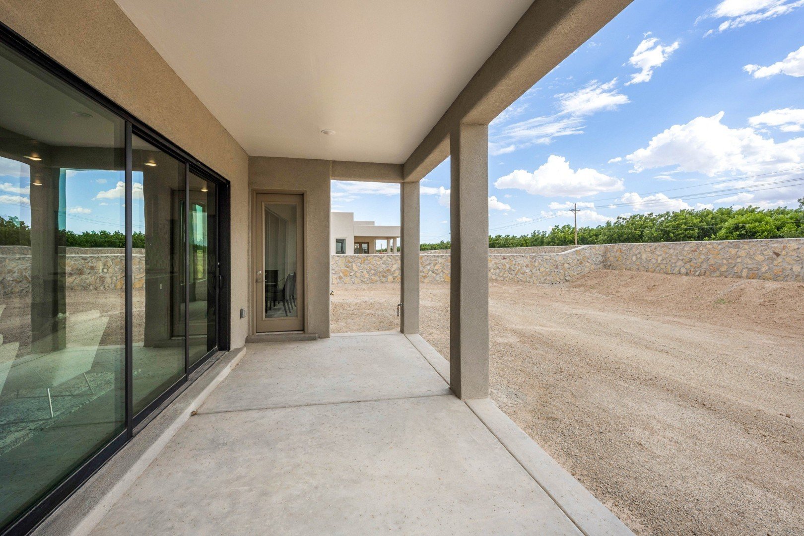 - Inviting entry portico and courtyard lead into an elegant central foyer, offering views of the spacious great room and grand patio