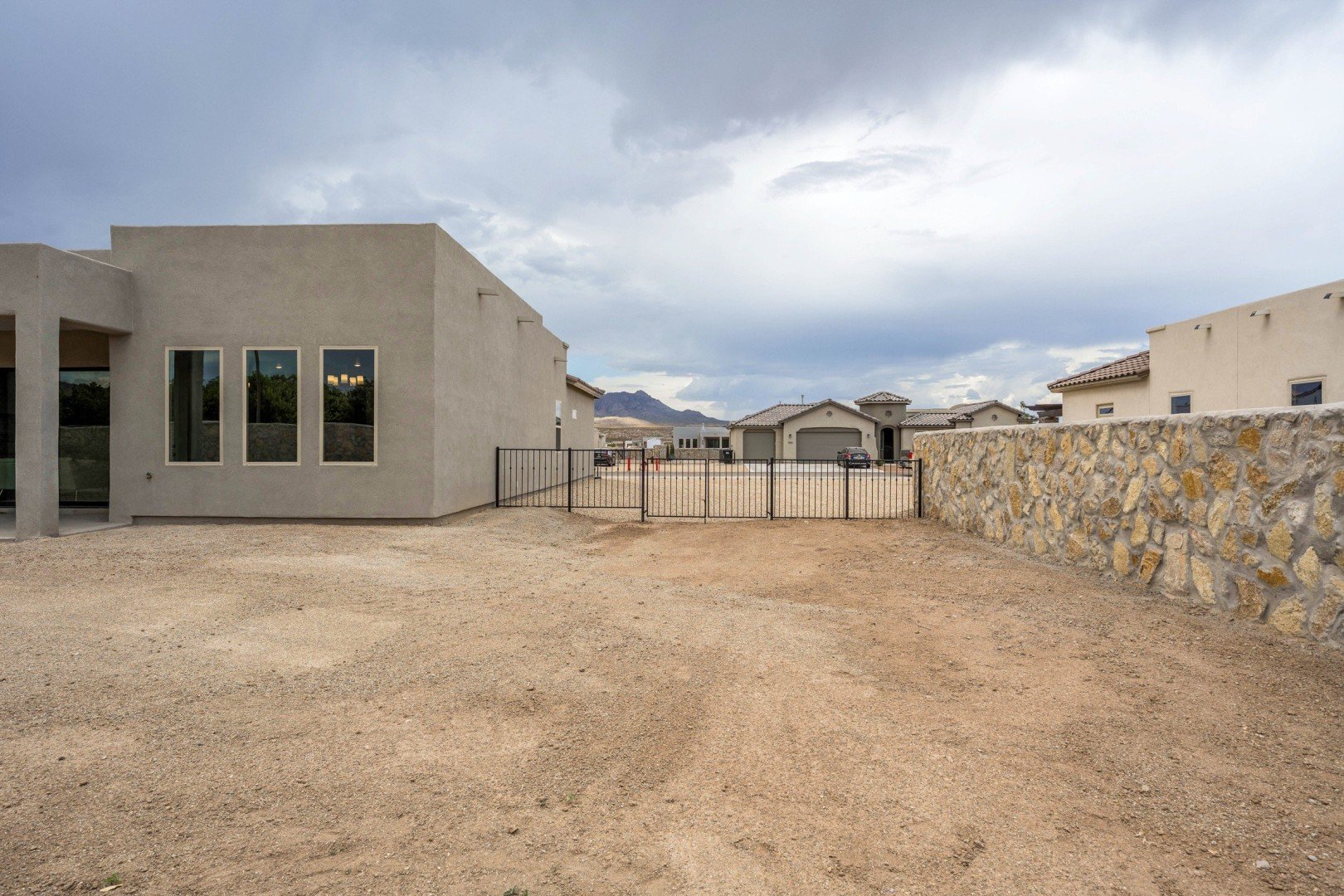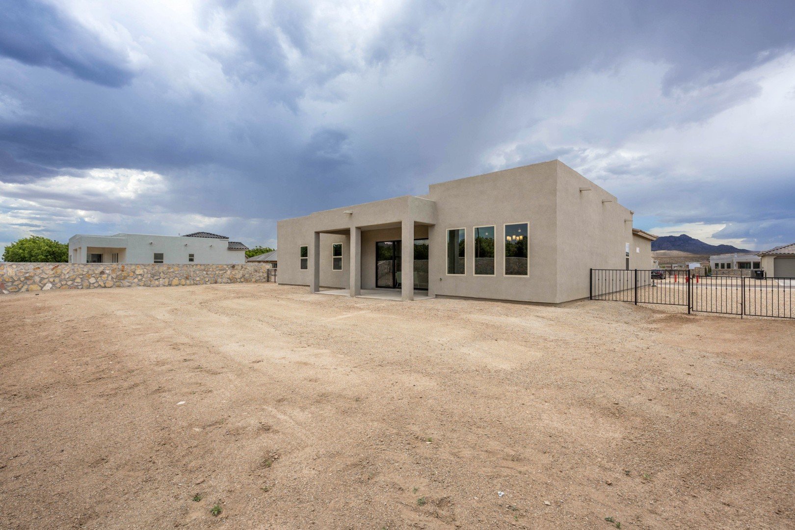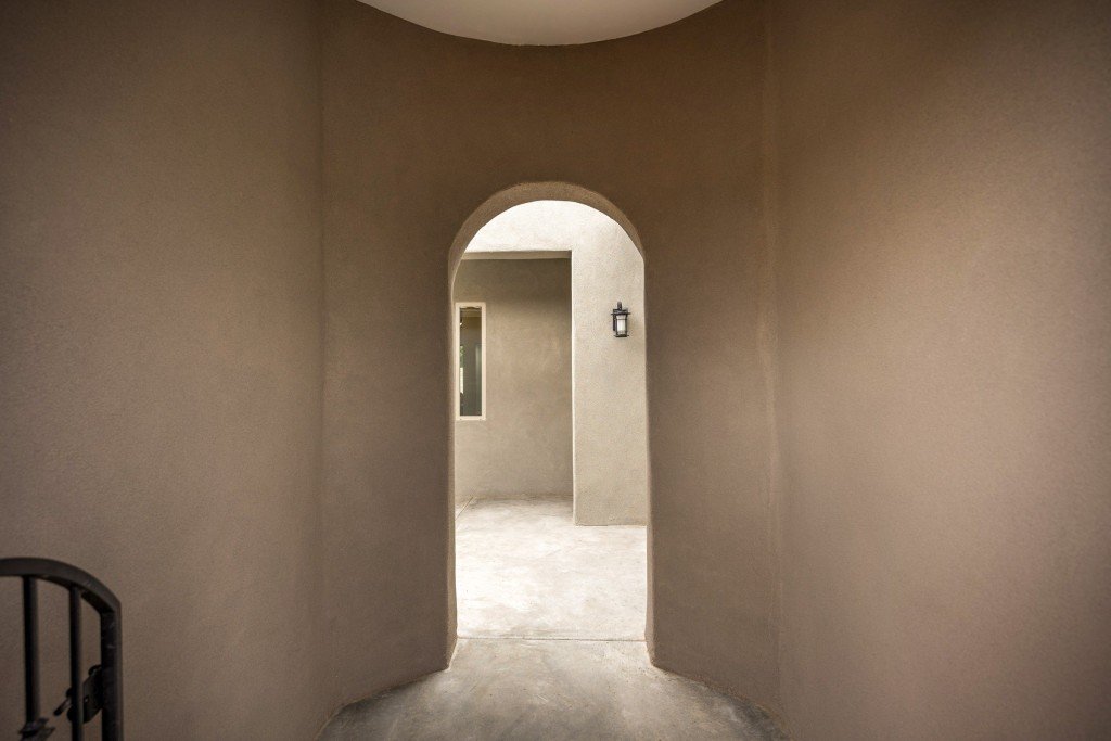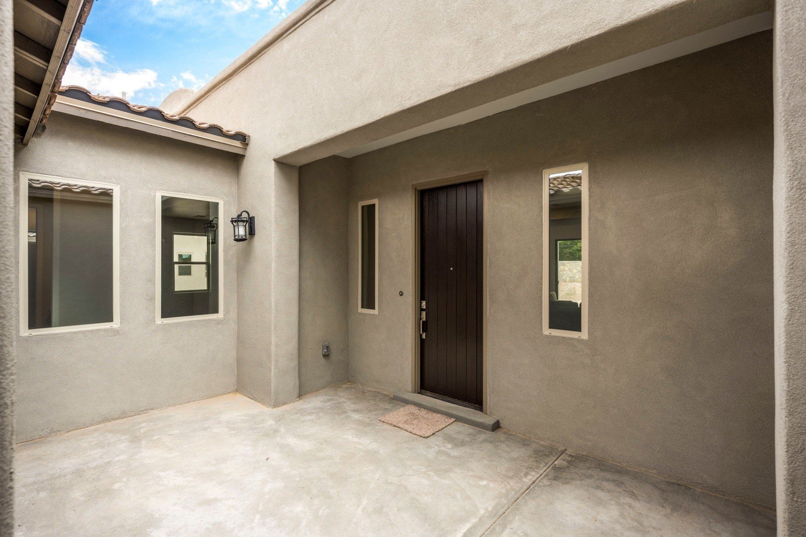 - Inviting entry portico and courtyard lead into an elegant central foyer, offering views of the spacious great room and grand patio