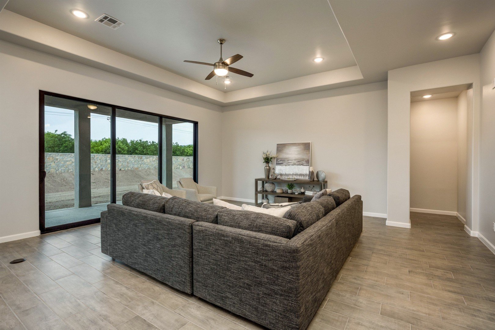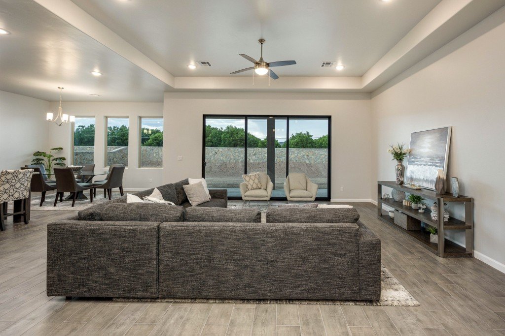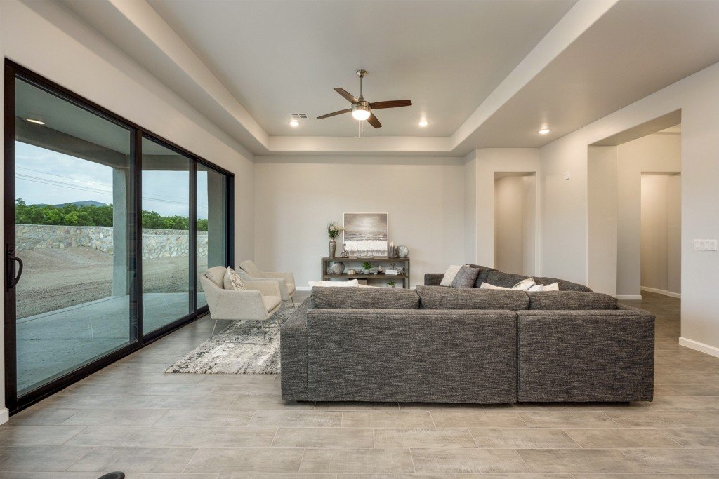 - Versatile flex room may be used as entertainment space or converted to a 4th bedroom or study