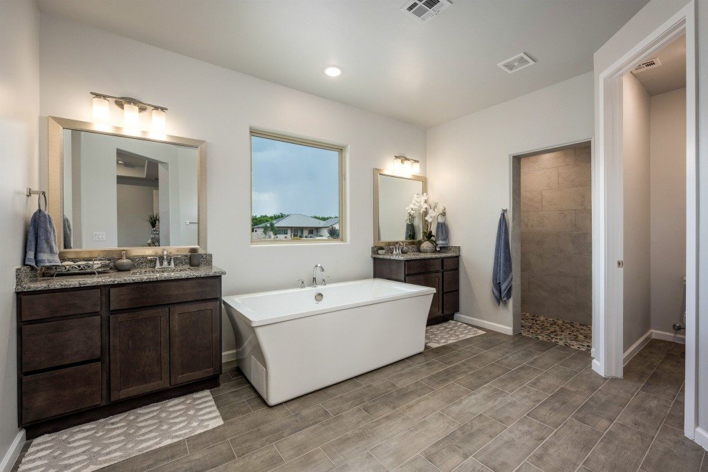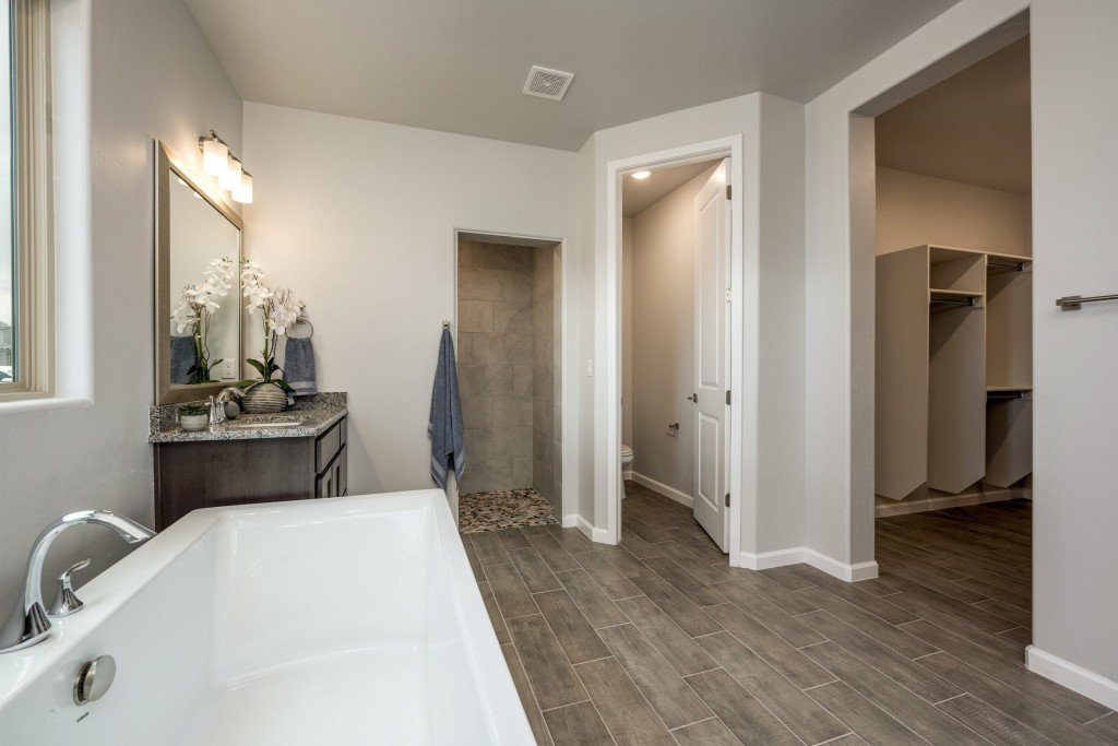 - Spacious owner suite features a luxurious soaking tub, separate shower, private toilet room, and 2 large walk-in closets