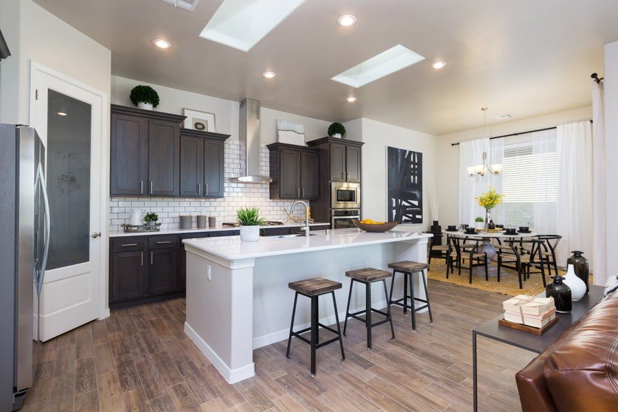 - Chef-inspired kitchen features a large center island, ample counter and cabinet space, and generous walk-in pantry