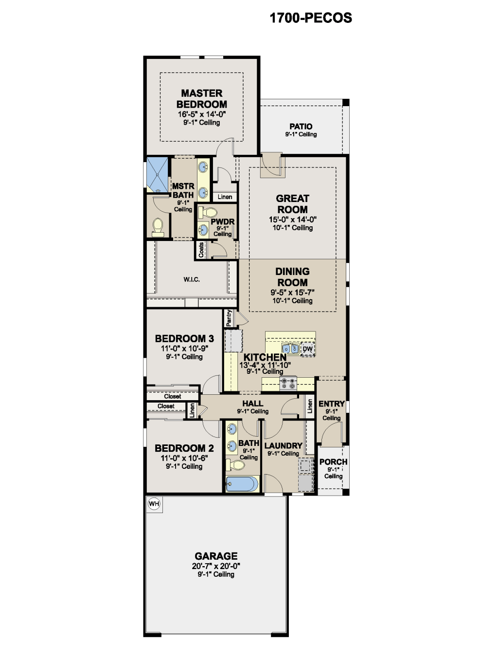 Meet the Pecos - the 1 story, 3 bedroom, 2.5-3 bathroom floor plan thoughtfully designed for everyday living. As you walk into the home, you'll find 2 secondary bedrooms and their accompanying full bathroom located near the entrance offering privacy for family or guests. Make your way through the home into the open-space main living area. Here you'll find the chef-inspired kitchen complete with an abundance of cabinet space, an island with bar top seating, and a corner pantry to maximize storage. The dining room is the focal point of the space providing a cozy space to convene over meals. Secluded in the rear of the home is the master suite, offering a private retreat at the end of the night. A spa-inspired ensuite with double vanities and a large walk in closet provide a seamless morning while getting ready for the day. Additional highlights of the Pecos include a two-car garage with extra storage space and a covered backyard patio fit for outdoor living.