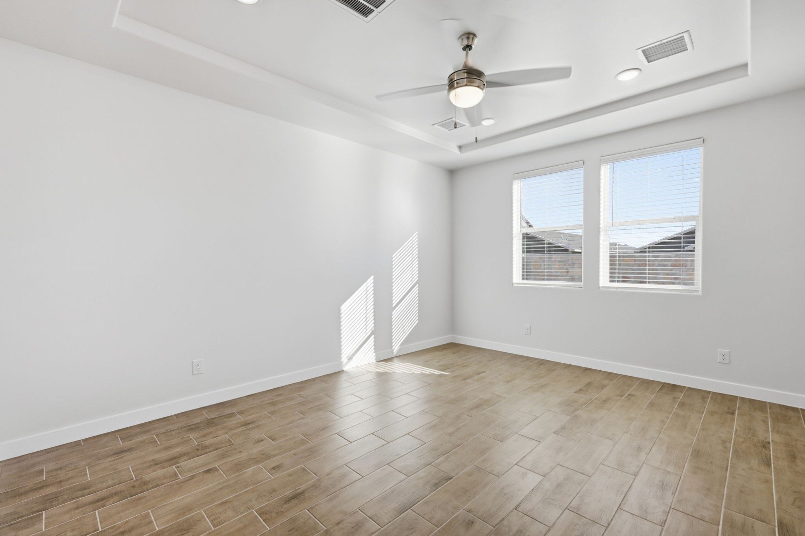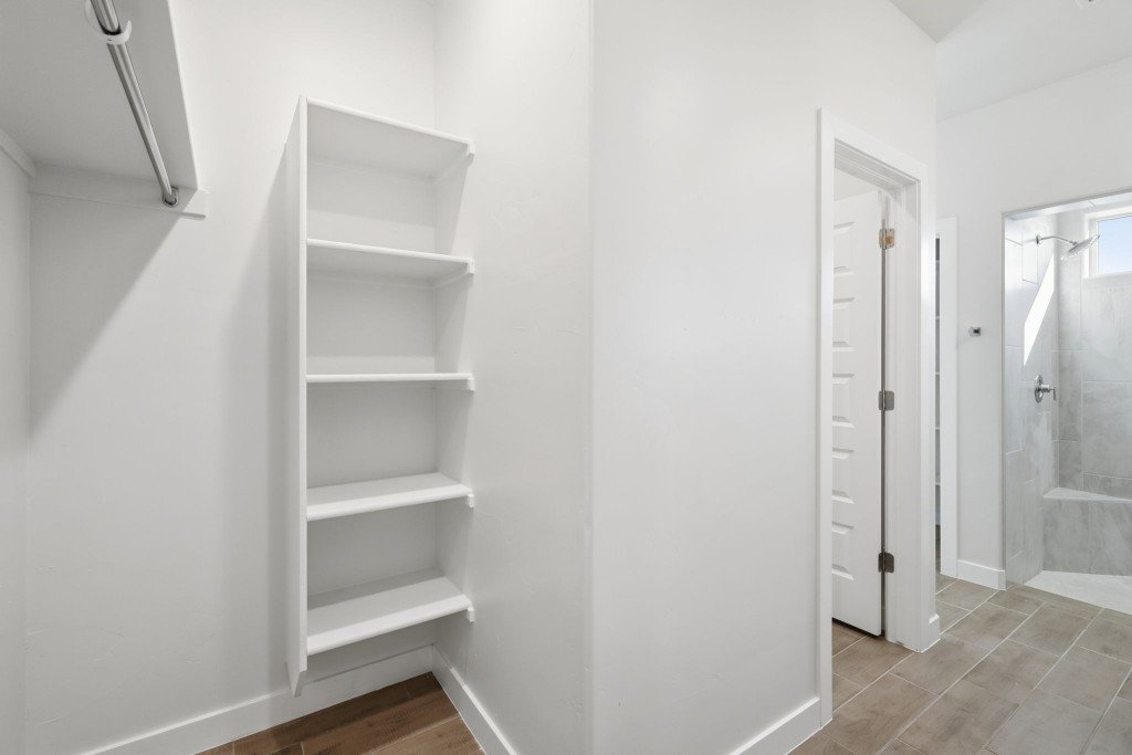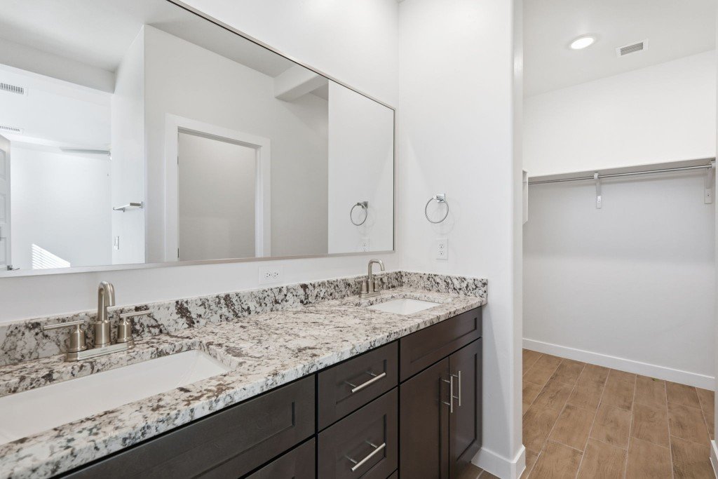 - Master bedroom retreat features an elegant walk-in shower and dual vanities