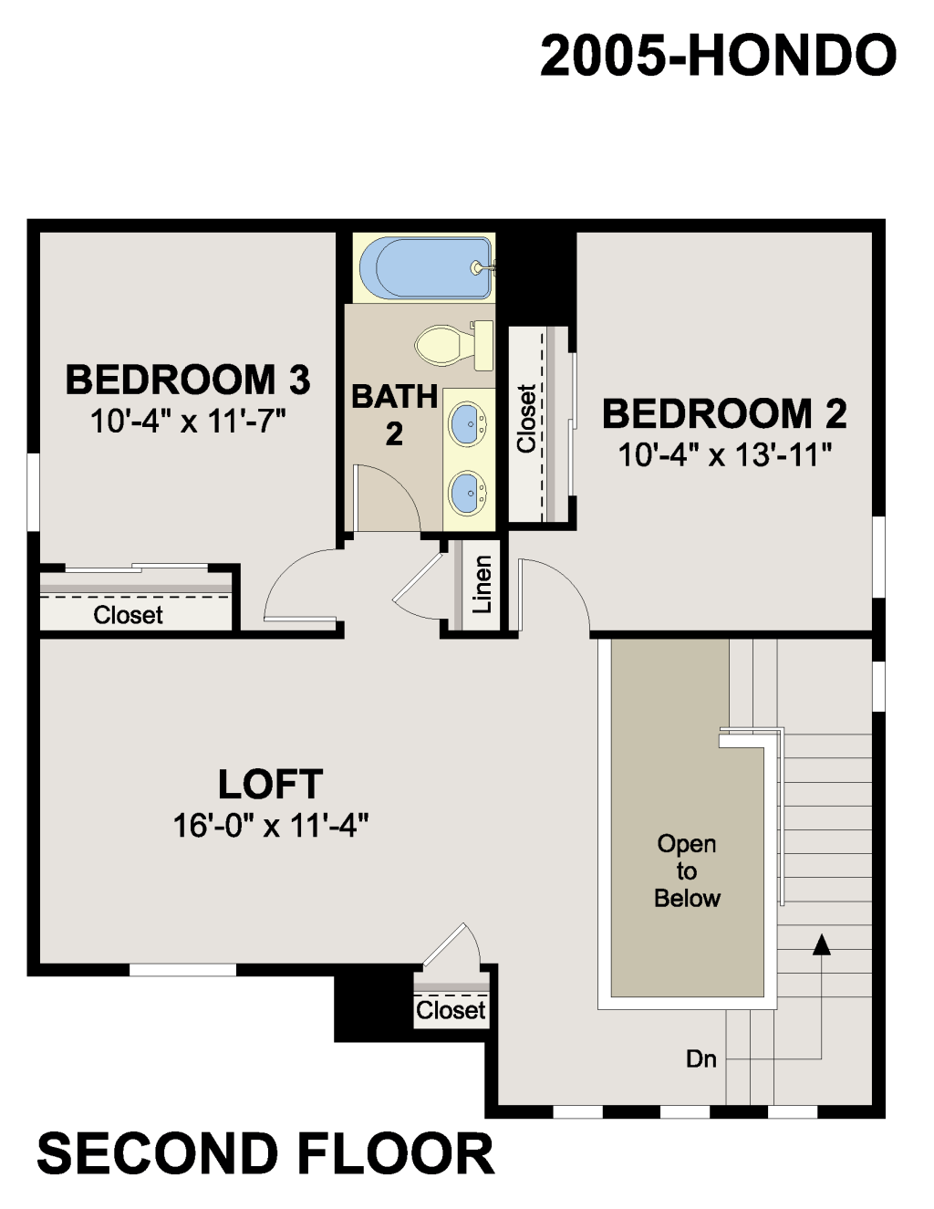 Meet the Hondo - a popular floor plan for ever-growing families. This two-story home provides plenty of space for family members with up to 4 bedrooms, 2.5 bathrooms, a loft or study option, and a 2 car garage. As you enter the Hondo, you'll be welcomed into the spacious main living area perfect for everyday living or special occasions. The luxury kitchen and dining room provides plenty of space for cooking, entertaining, and gathering with a stovetop and vent hood, an island, and a corner pantry providing ample storage. The great room provides access to the covered backyard patio. Secluded on the first floor, the master suite stays private and peaceful with a spa-like ensuite featuring dual vanities, a step-in shower, and a large walk-in closet. Upstairs, two secondary bedrooms and their accompanying full bathroom seclude guests or family. The spacious upstairs loft may be converted into a bedroom or study.