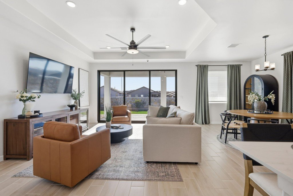 This thoughtfully designed single-story home offers a spacious layout with four bedrooms, two bathrooms, and an open-concept living area that seamlessly connects the great room, dining area, and kitchen. The master suite features a walk-in closet and a private bathroom, while the additional bedrooms provide flexibility for guests, a home office, or a growing family. With optional upgrades like a gourmet kitchen, extended patio, and deluxe master bath, the Valencia can be tailored to fit your lifestyle perfectly.