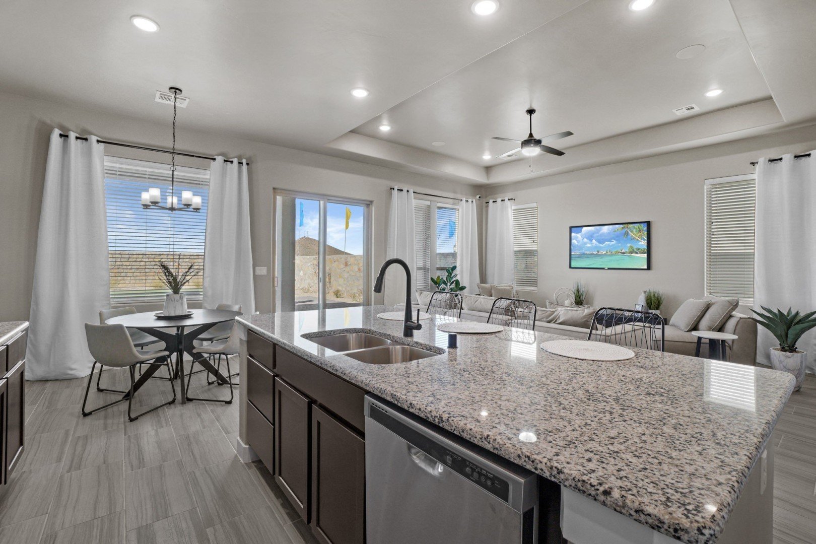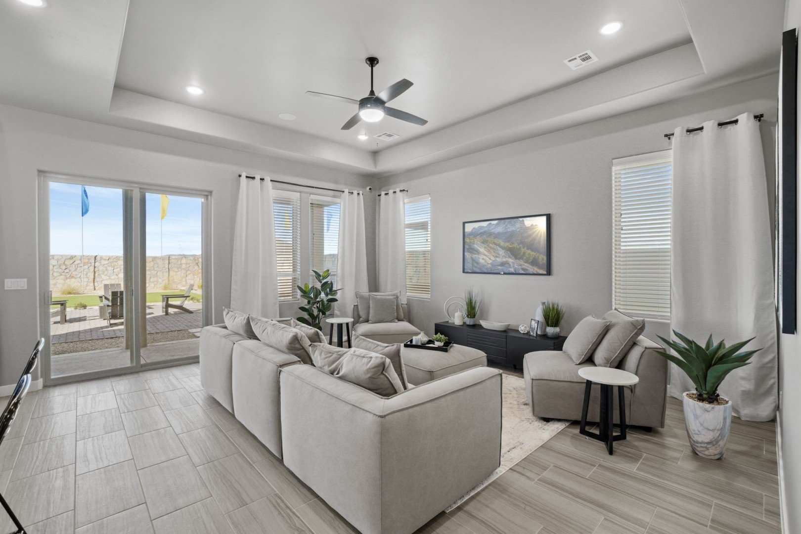 - Grand patio spans the great room and dining area, combining the benefits of indoor-outdoor living
