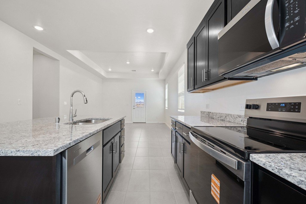 - Designer kitchen includes an island breakfast bar and a generous pantry