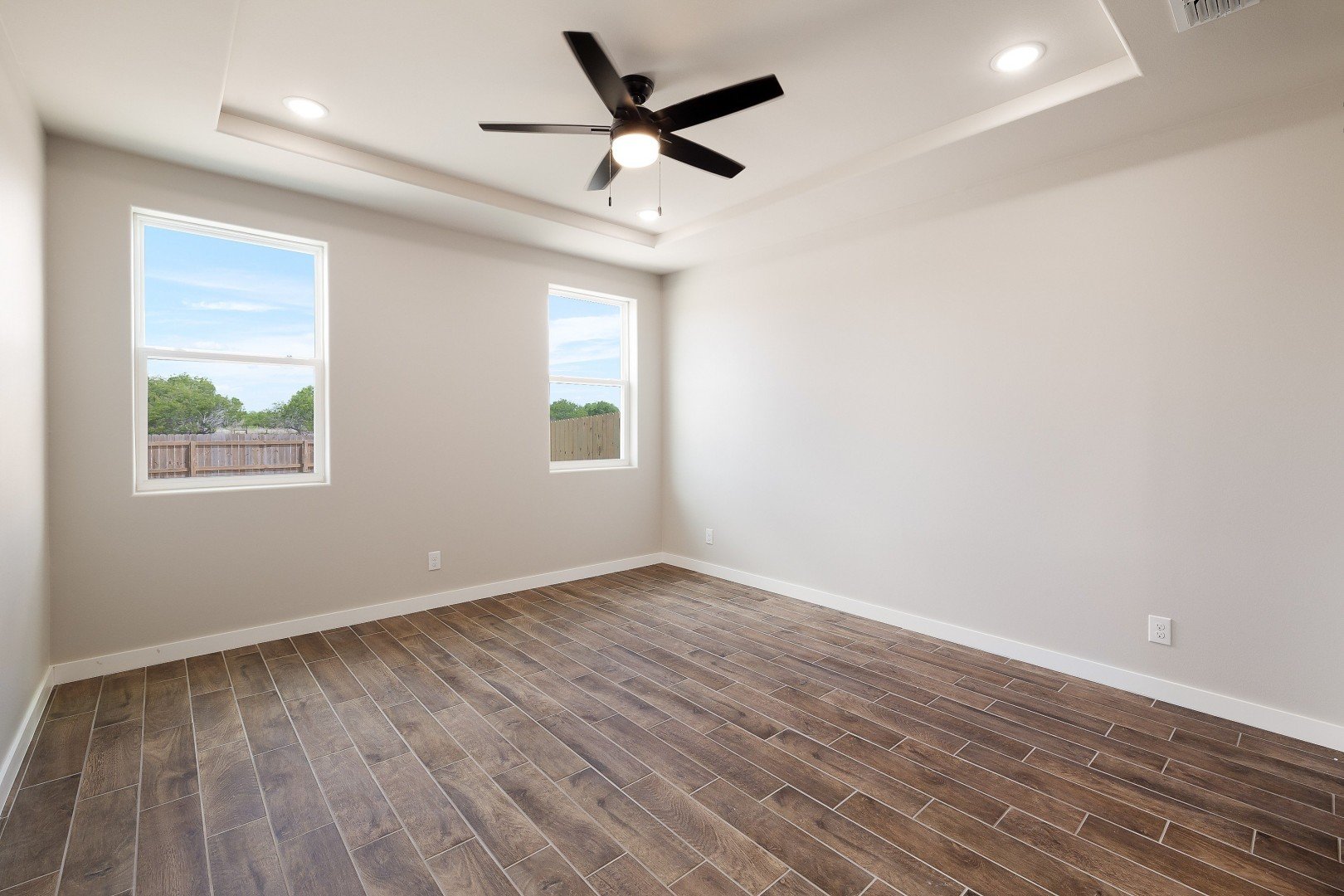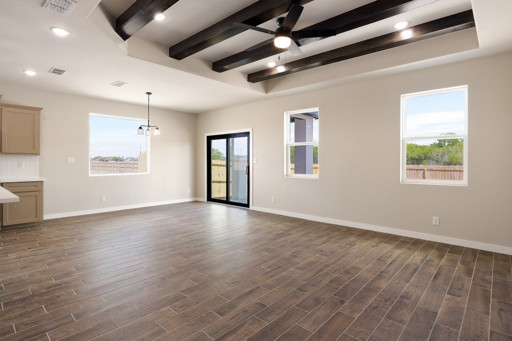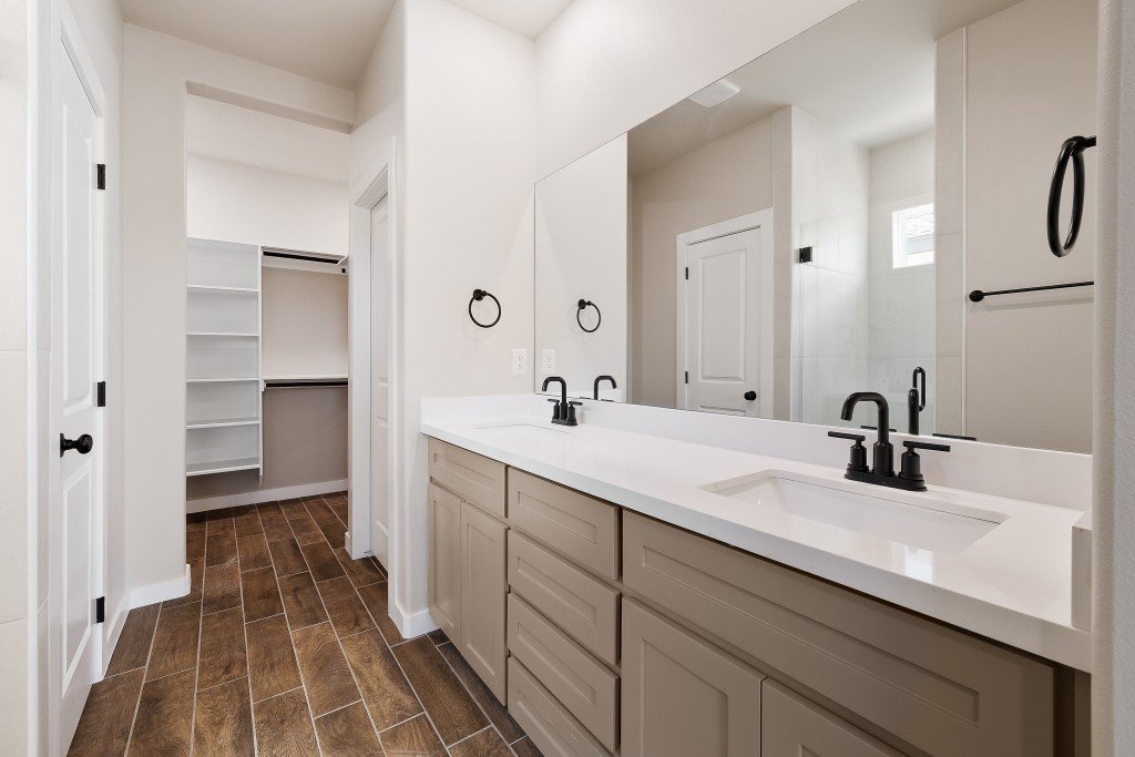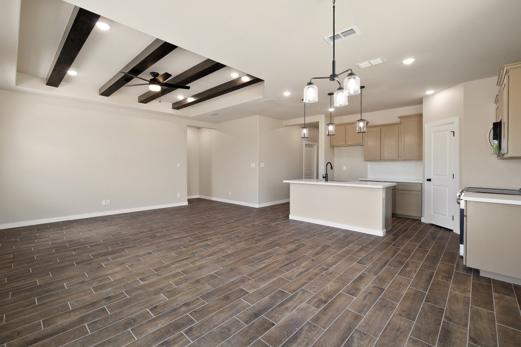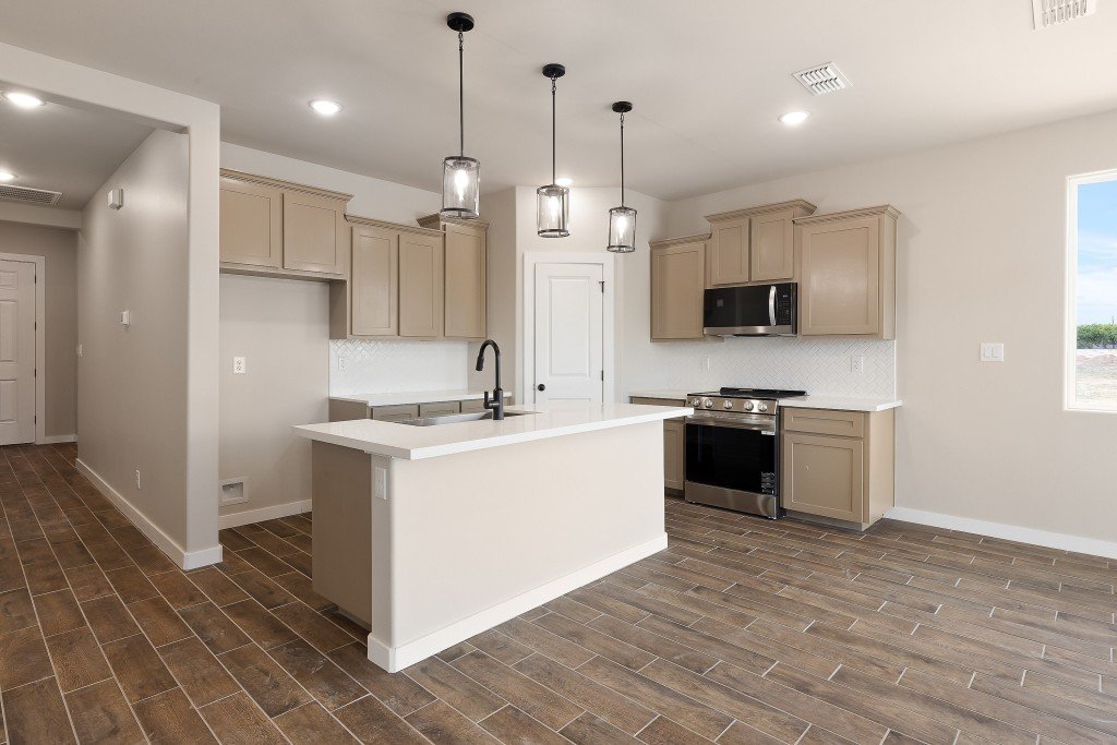 This inviting home offers a modern open-concept layout that seamlessly blends the great room, dining room, and kitchen—creating an ideal space for both everyday living and entertaining. The kitchen features a convenient walk-in pantry, standard quartz countertops, and includes LG stainless steel appliances such as a dishwasher and stove. The spacious master bedroom provides comfort and privacy, complete with a large walk-in closet and an additional linen closet for extra storage. A generous laundry room offers ample space for organization and everyday convenience. A relaxing patio extends your living area outdoors, perfect for enjoying fresh air or hosting casual gatherings. Stylish 12" x 24" tile flooring flows throughout the main areas, adding a clean, contemporary touch to the home’s overall design.