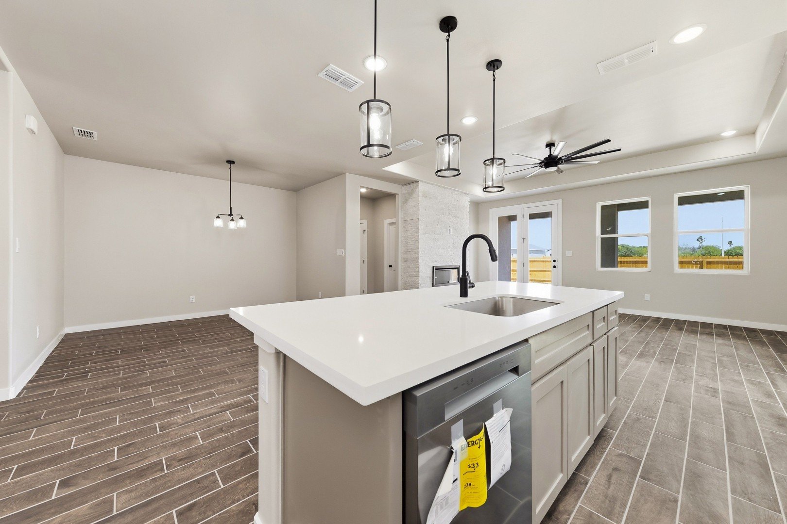 Open-concept kitchen, dining room, and great room