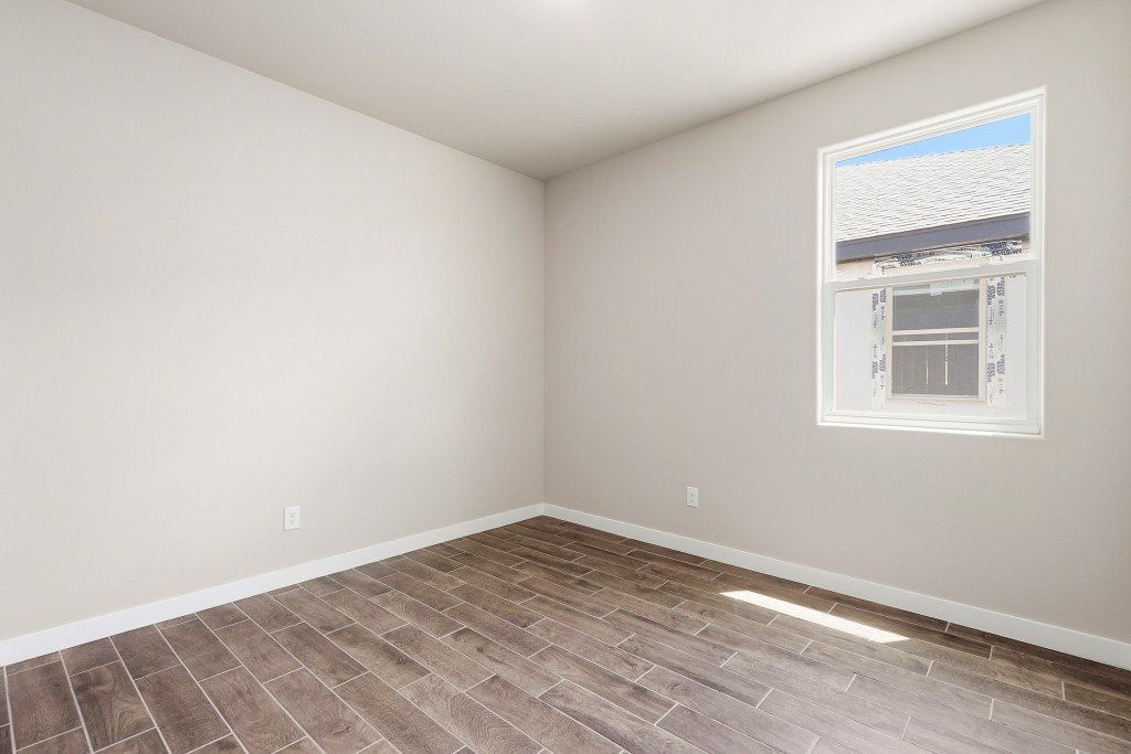 This spacious four-bedroom, two-bathroom home features an open-concept layout connecting the dining room, great room, and kitchen—perfect for both everyday living and entertaining. The kitchen includes a walk-in pantry, providing plenty of storage and functionality, while the adjacent laundry room adds convenience to daily routines. The primary suite offers a large bathroom with dual sinks and a generous walk-in closet, creating a private retreat. Additional storage is provided by a linen closet near the entry area. Step outside to an elongated patio, ideal for outdoor gatherings and relaxation.