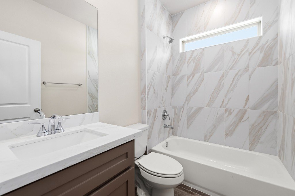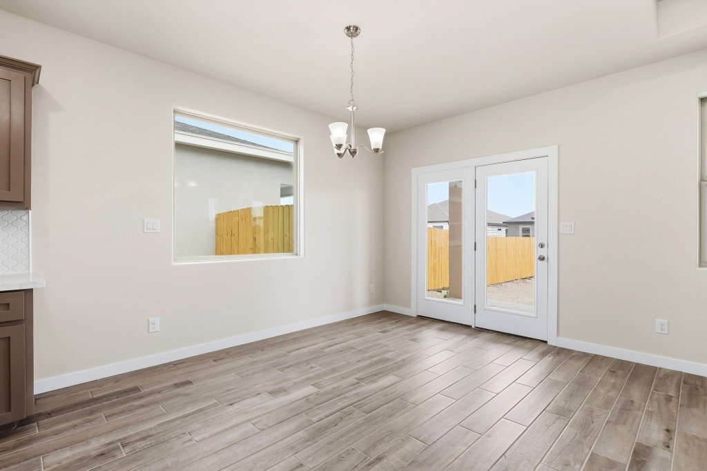 This inviting home offers a modern open-concept layout that seamlessly blends the great room, dining room, and kitchen—creating an ideal space for both everyday living and entertaining. The kitchen features a convenient walk-in pantry, standard quartz countertops, and includes LG stainless steel appliances such as a dishwasher and stove. The spacious master bedroom provides comfort and privacy, complete with a large walk-in closet and an additional linen closet for extra storage. A generous laundry room offers ample space for organization and everyday convenience. A relaxing patio extends your living area outdoors, perfect for enjoying fresh air or hosting casual gatherings. Stylish 12" x 24" tile flooring flows throughout the main areas, adding a clean, contemporary touch to the home’s overall design.