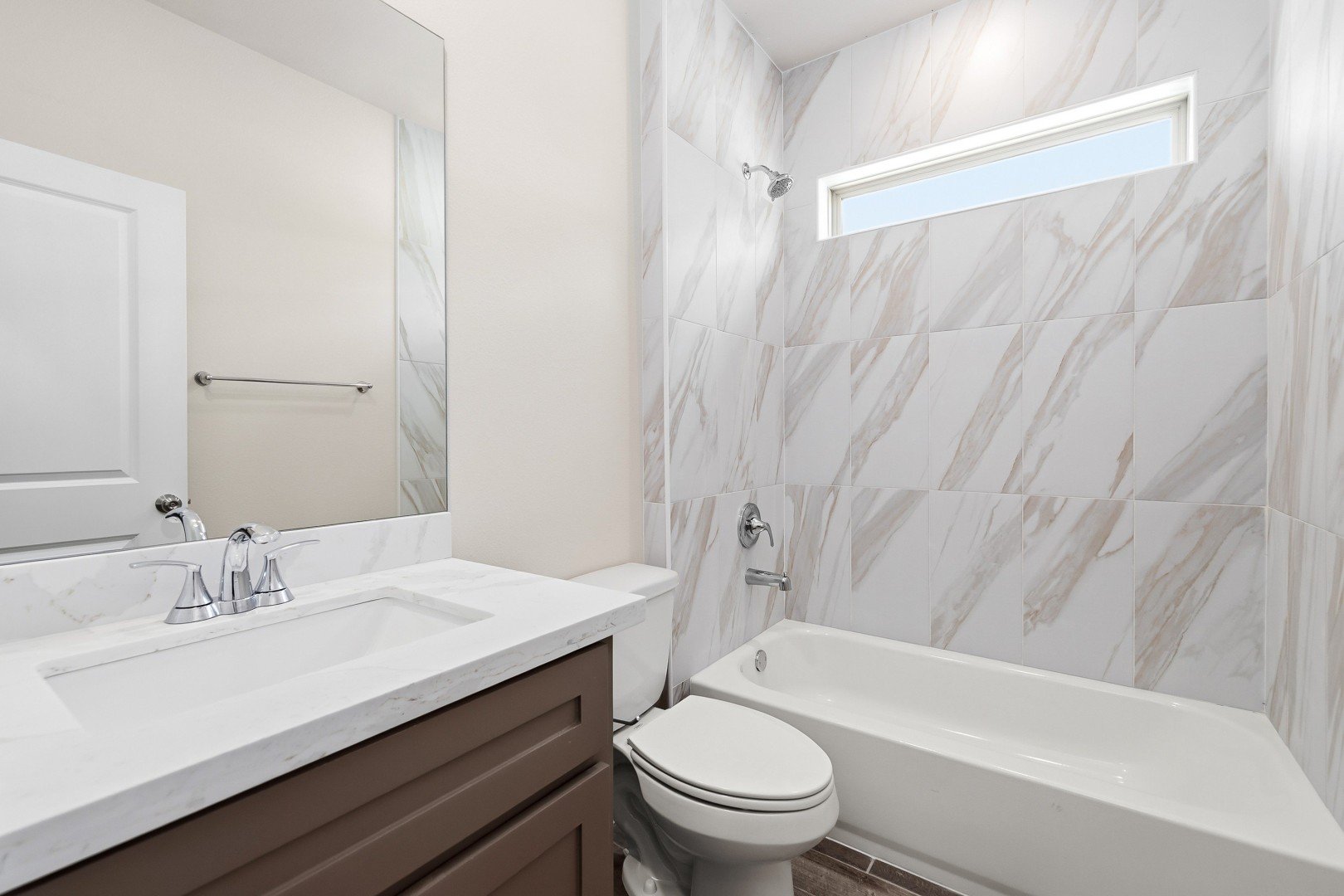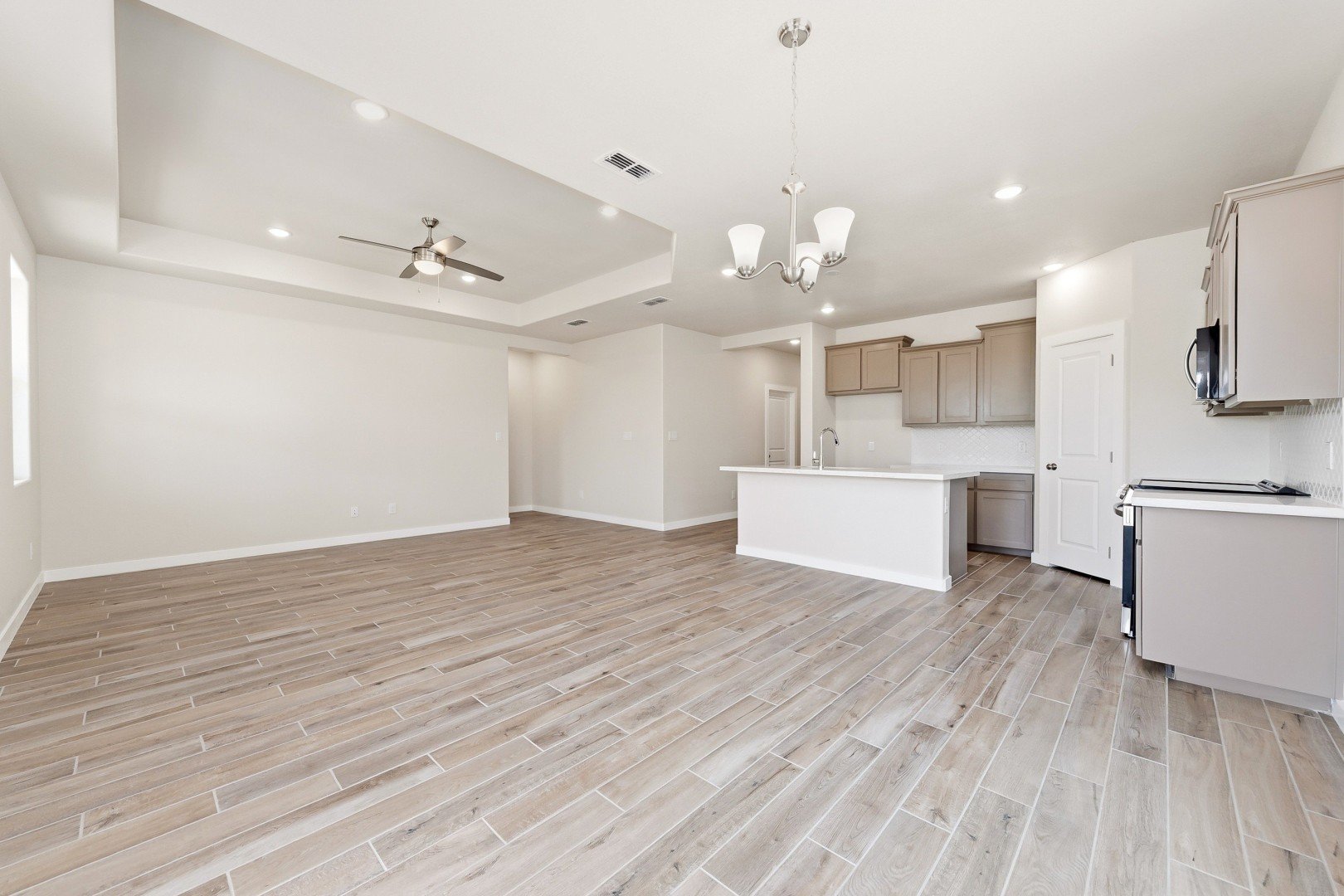 - Stylish 12" x 24" tile flooring in main areas
