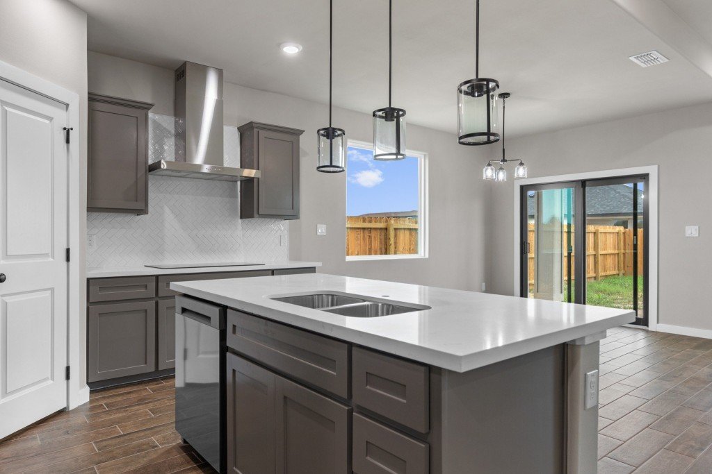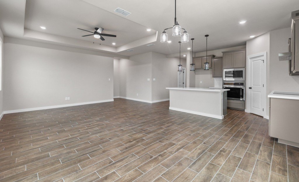 This inviting home offers a modern open-concept layout that seamlessly blends the great room, dining room, and kitchen—creating an ideal space for both everyday living and entertaining. The kitchen features a convenient walk-in pantry, standard quartz countertops, and includes LG stainless steel appliances such as a dishwasher and stove. The spacious master bedroom provides comfort and privacy, complete with a large walk-in closet and an additional linen closet for extra storage. A generous laundry room offers ample space for organization and everyday convenience. A relaxing patio extends your living area outdoors, perfect for enjoying fresh air or hosting casual gatherings. Stylish 12" x 24" tile flooring flows throughout the main areas, adding a clean, contemporary touch to the home’s overall design.