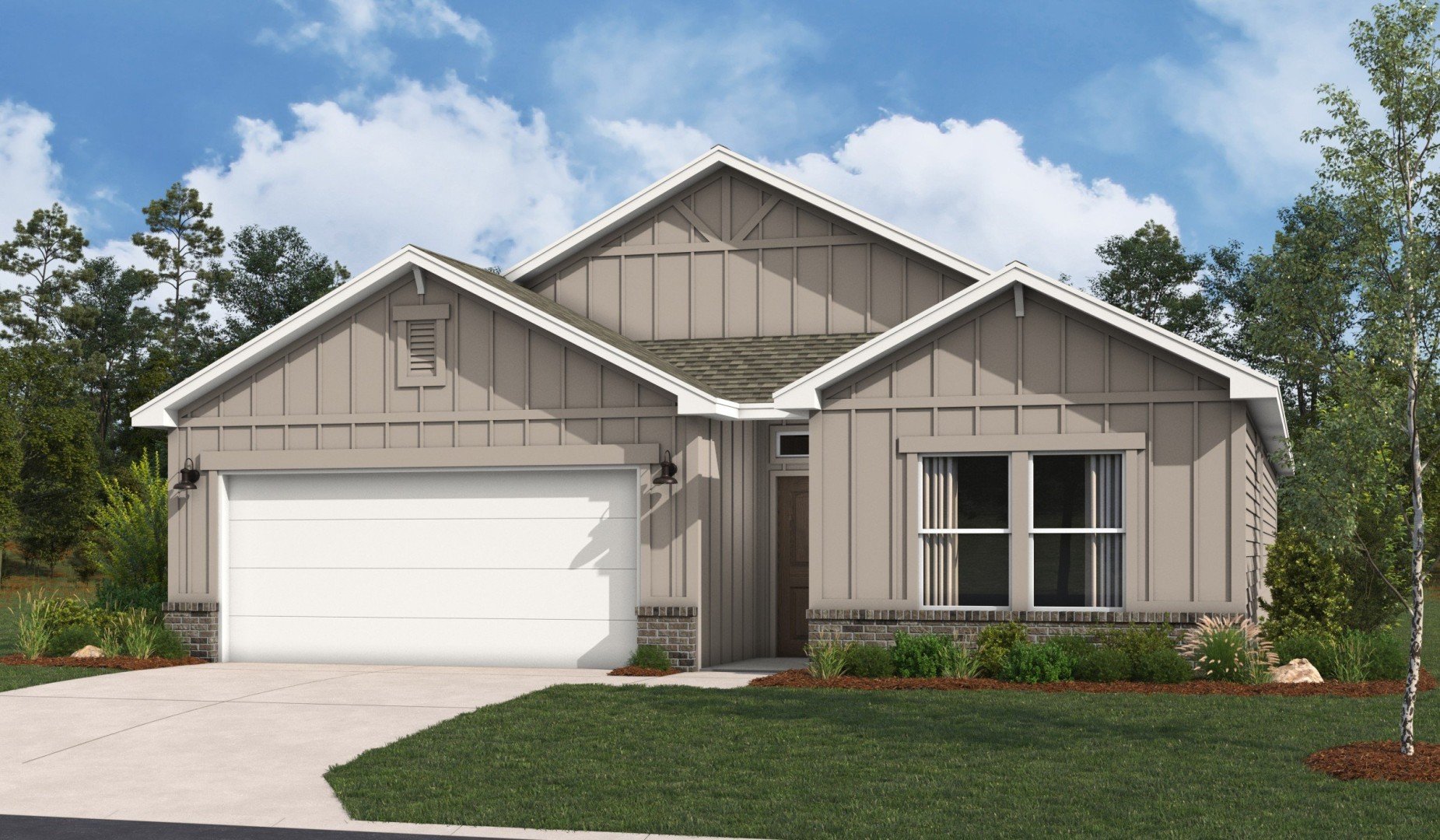 The private owner’s suite is a peaceful retreat with a spa-inspired bath and a large walk-in closet. Secondary bedrooms are thoughtfully placed in their own wing, offering flexibility for kids, guests, or a home office. A convenient laundry room and two-car garage complete this functional, comfortable design.