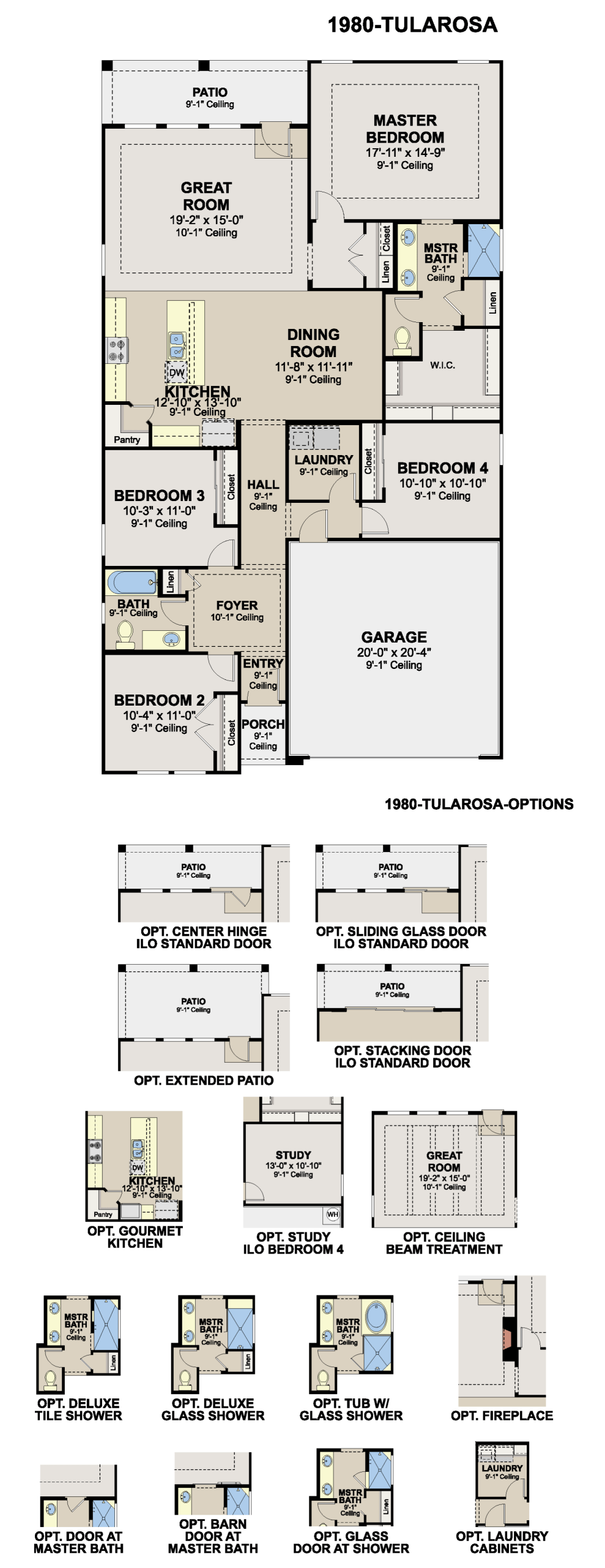 - Upgrades include a gourmet kitchen, 4th bedroom, classic ceiling beam or towering 3-panel stacking door in the great room to expand your view and living space