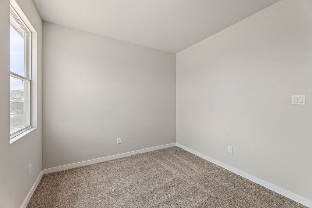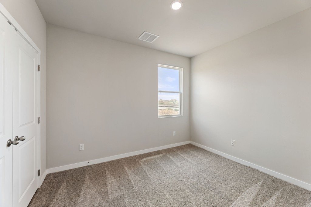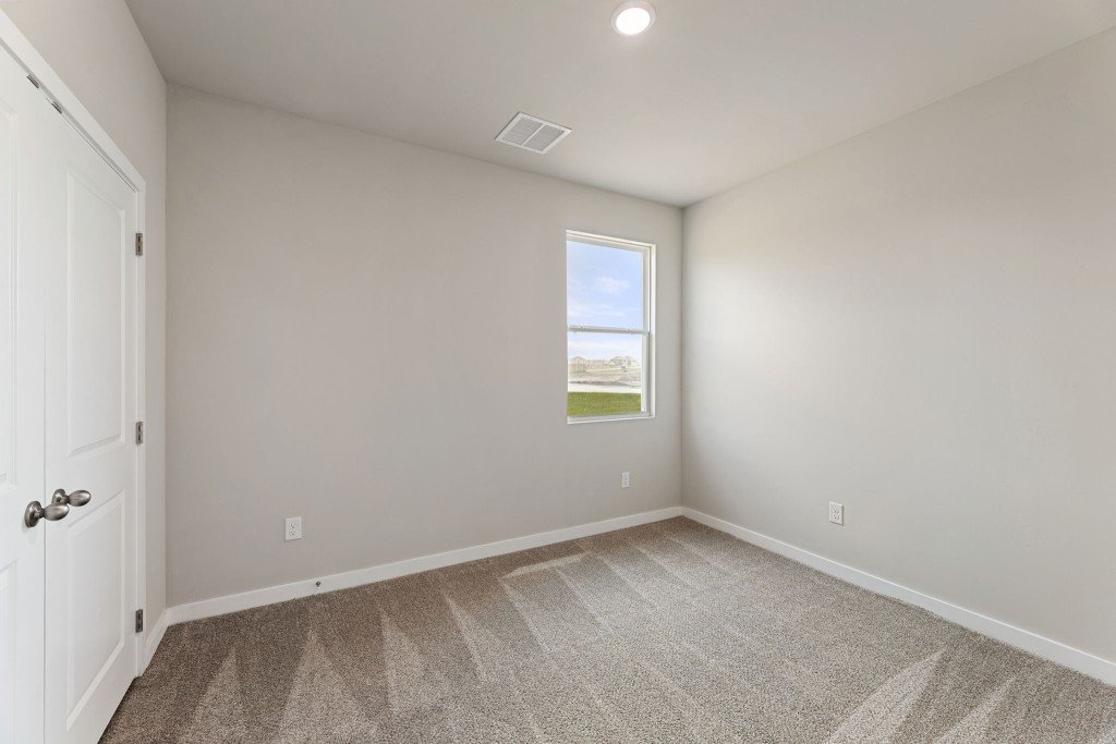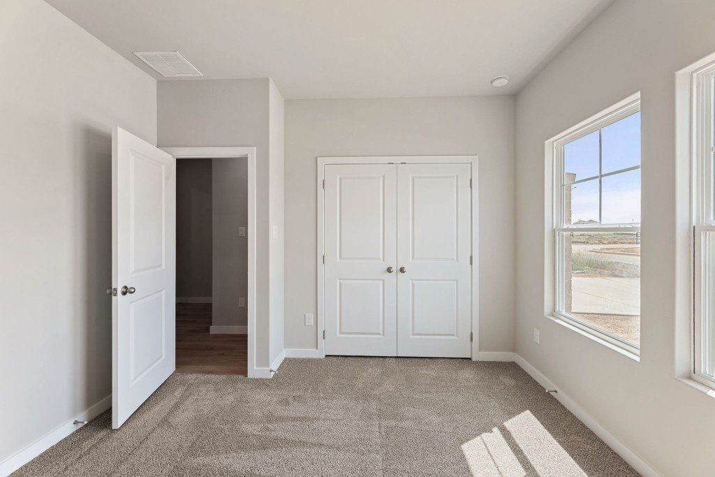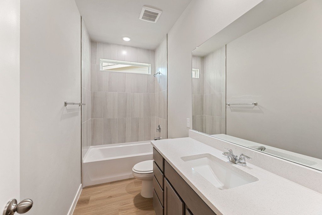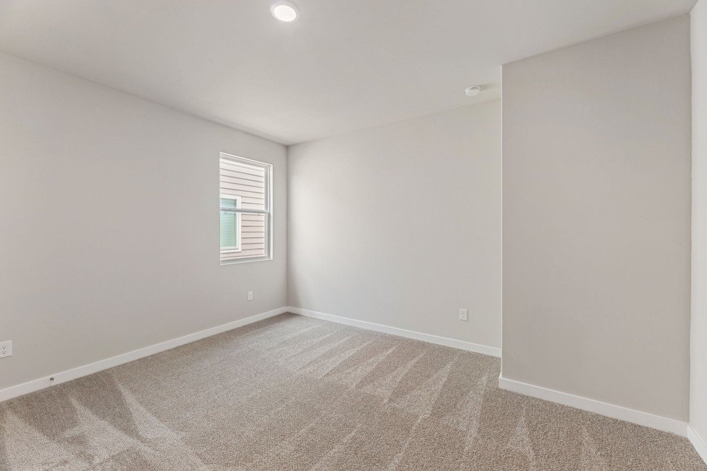 The private owner’s suite includes dual vanities, a glass-enclosed shower, and two walk-in closets, while secondary bedrooms are thoughtfully separated for added comfort.