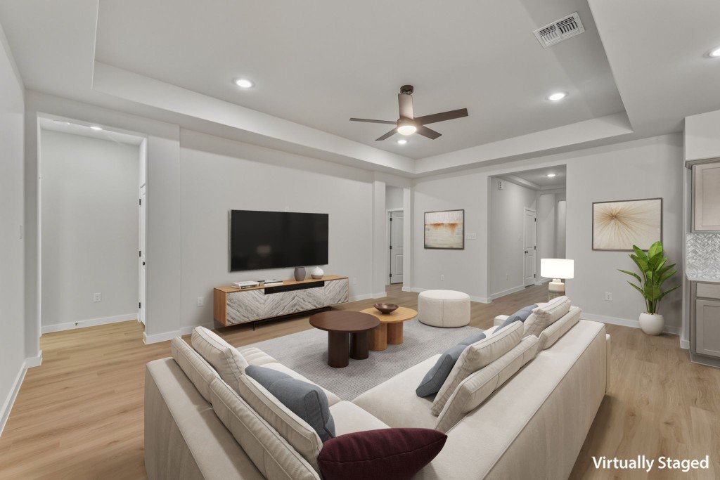 The Arlington offers a smart, modern layout designed for comfort and flexibility. A welcoming front porch leads into a private hallway where two secondary bedrooms and a shared full bath create a quiet retreat for family or guests.