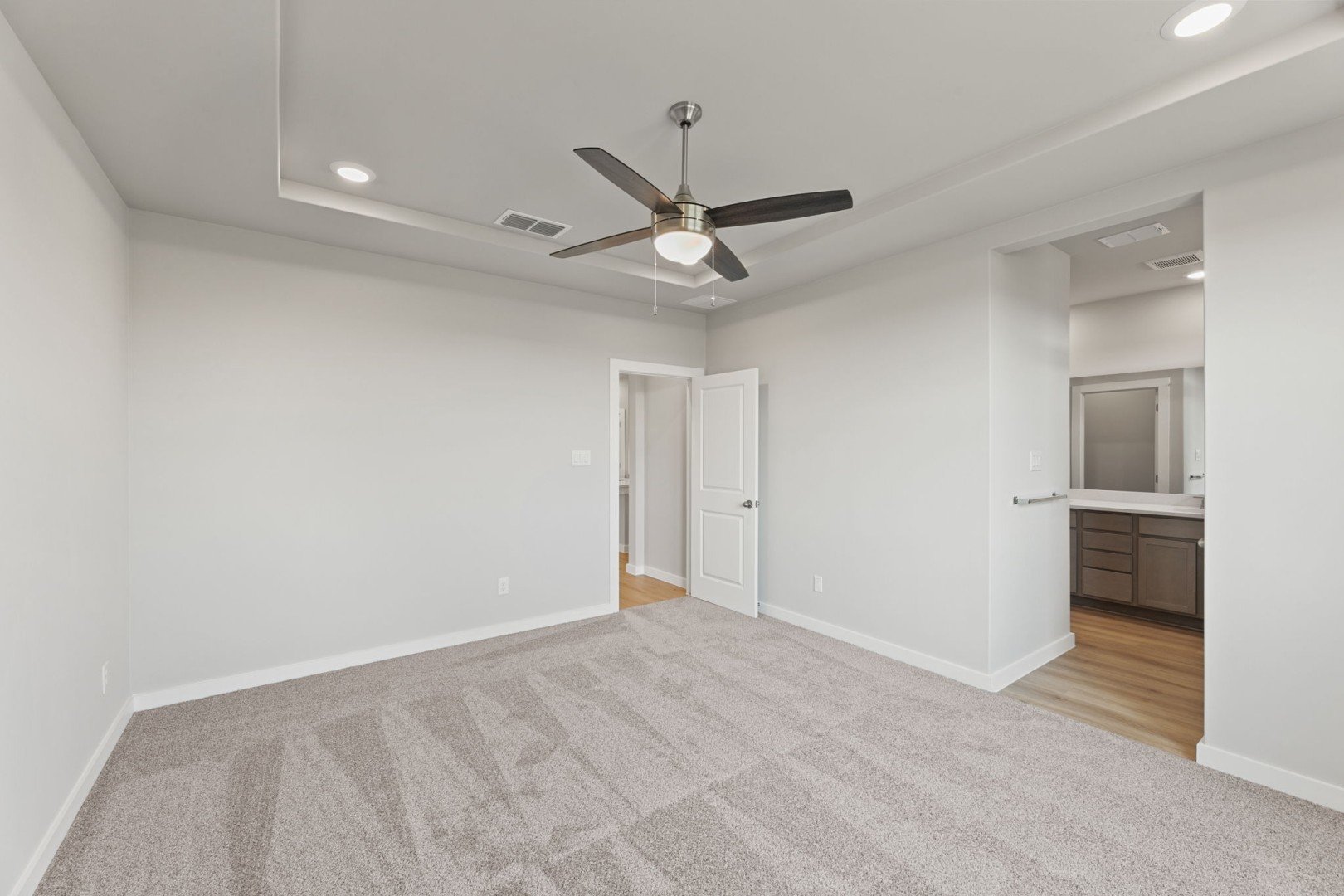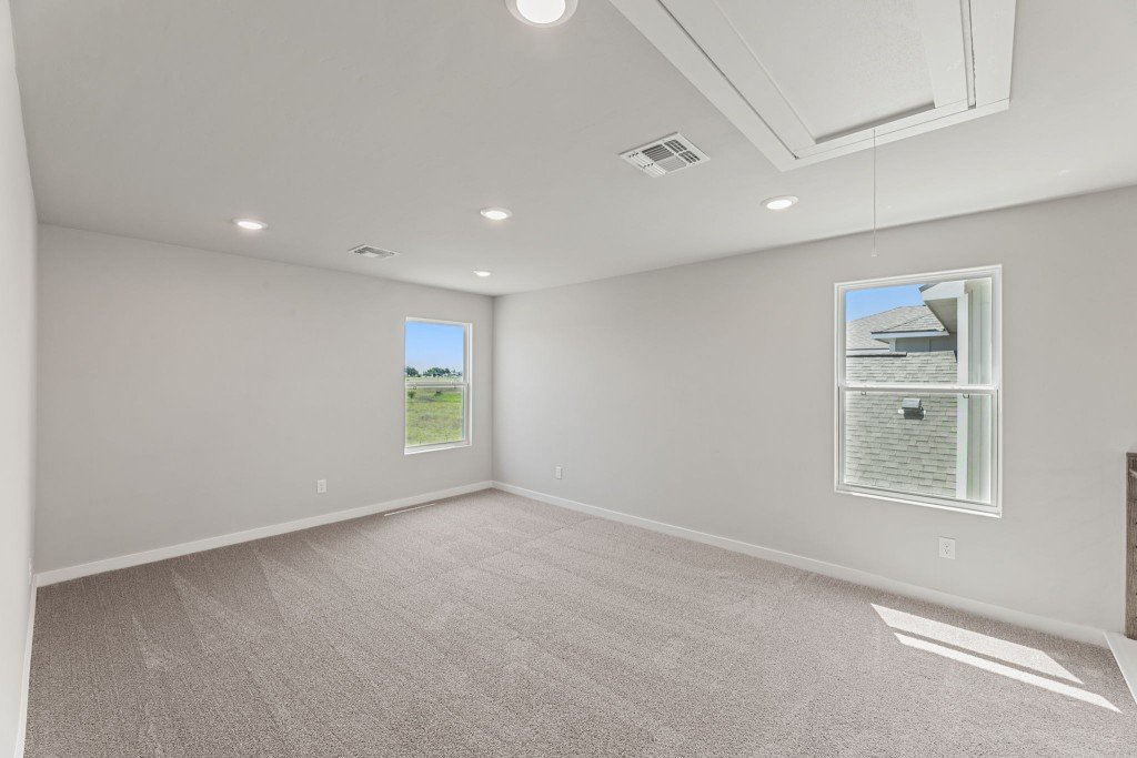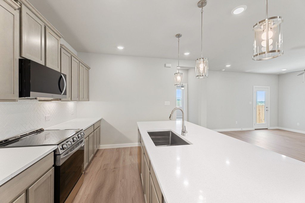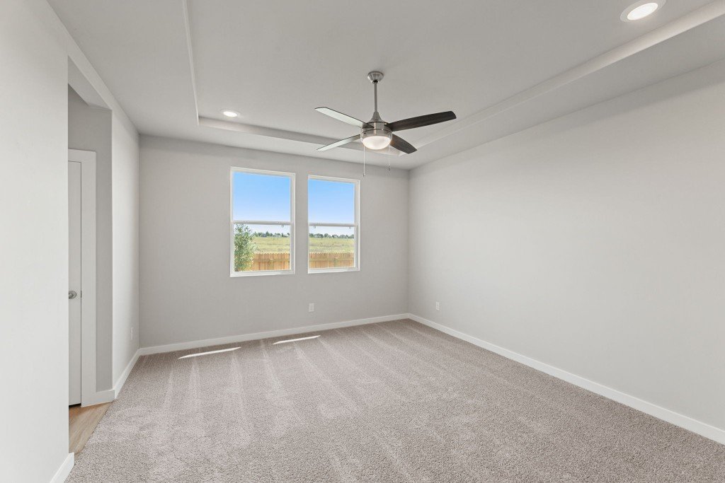 Welcome to the Colorado, a spacious 2-story floor plan with up to 5 bedrooms, 3 full bathrooms, and 2 garage spaces offering plenty of space for family members to spread out, yet centrally located gathering areas to come back together. The main living area's open concept design makes the focal point of the home perfect for entertaining. The Great Room's 9' ceilings, sliding back door, and large windows allow natural light to pour through the home while the spacious dining area makes mealtime a special occasion. The gourmet kitchen contains chef-inspired features including a stovetop and vent hood, a large island for prepping and additional seating, stainless steel appliances, an abundance of cabinets, and a corner pantry to maximize storage. At the end of the night, escape to the master bedroom strategically located on the first floor, featuring a spa-like ensuite with double vanities, a separate water closet, and a large walk-in closet. Upstairs three secondary bedrooms and their accompanying full bath provide privacy for household members or guests while the loft may be converted to a study or 5th bedroom option. Additional highlights of the Colorado include a two-car garage with extra storage space and a covered backyard patio, perfect for enjoying quiet mornings or lively evenings.
