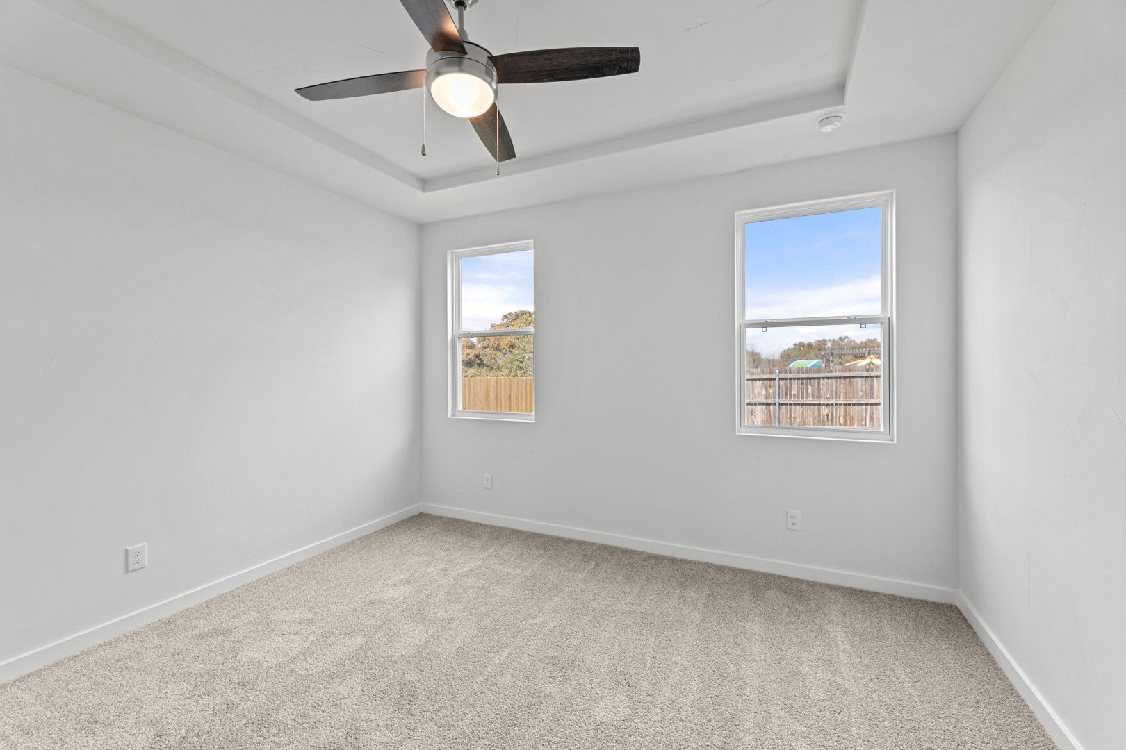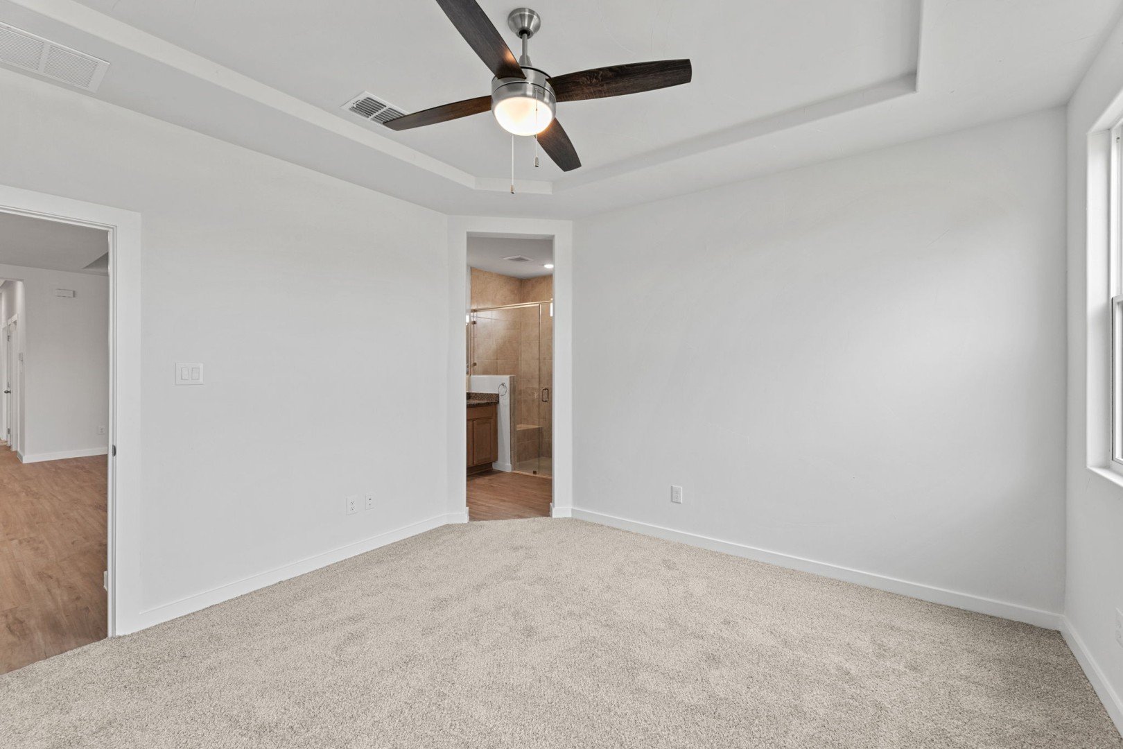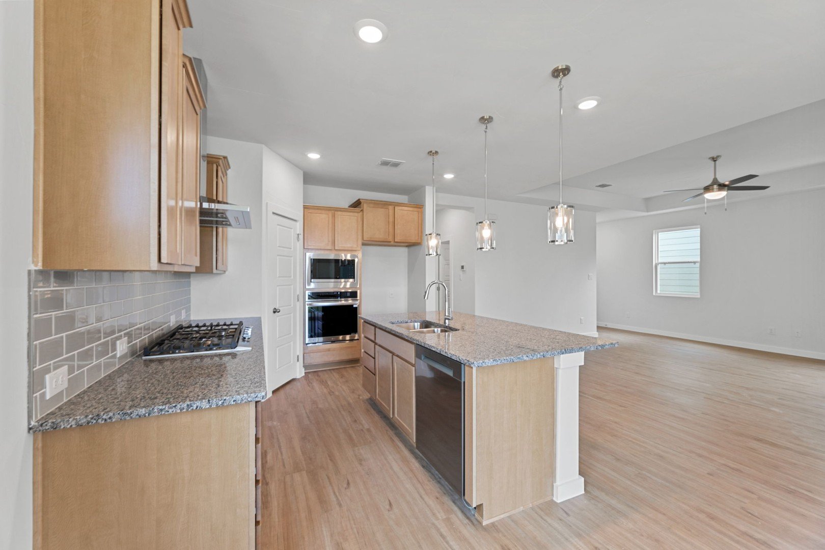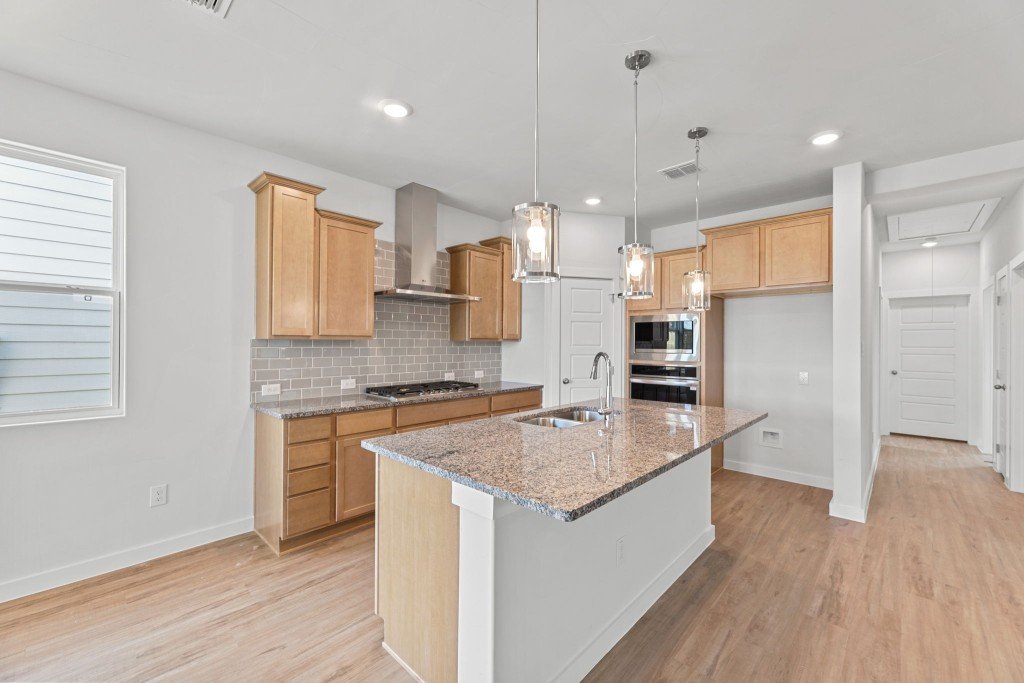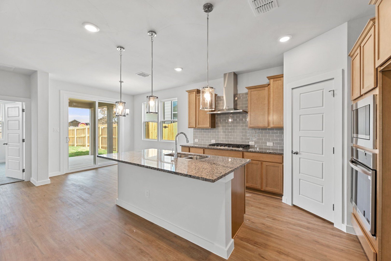 Welcome to the Sabrine, a 1 story, 3 bedroom, 2 bathroom home that blends comfort and convenience. Enter the front door and be welcomed into the open-concept main living area. The spacious Great Room is the perfect backdrop for family gatherings and entertaining guests alike. The kitchen boasts sleek countertops, a large center island, and a corner pantry for optimal space and storage. The adjacent dining room provides easy access to the backyard patio. Tucked away in the back of the home, the master suite offers a private oasis featuring a luxurious ensuite with a double vanity, walk-in shower, and spacious walk-in closet. The two secondary bedrooms and their shared full bedroom are privately located near the entrance of the home, ensuring comfort and seclusion for family members or guests. Additional highlights of the Sabrine include a two-car garage with extra storage space and a covered backyard patio, perfect for enjoying quiet mornings or lively evenings.