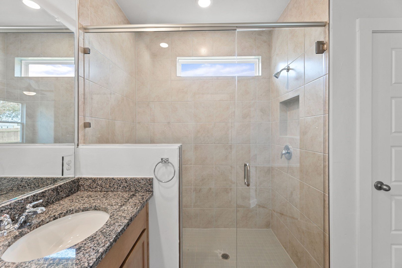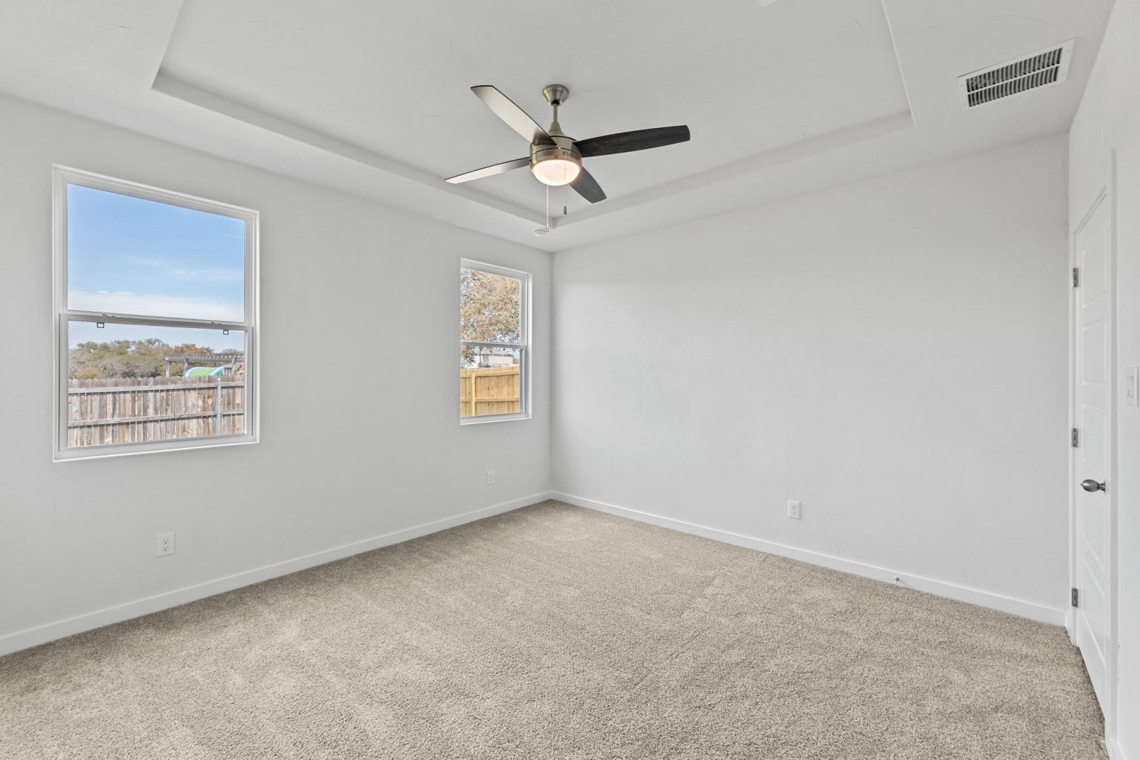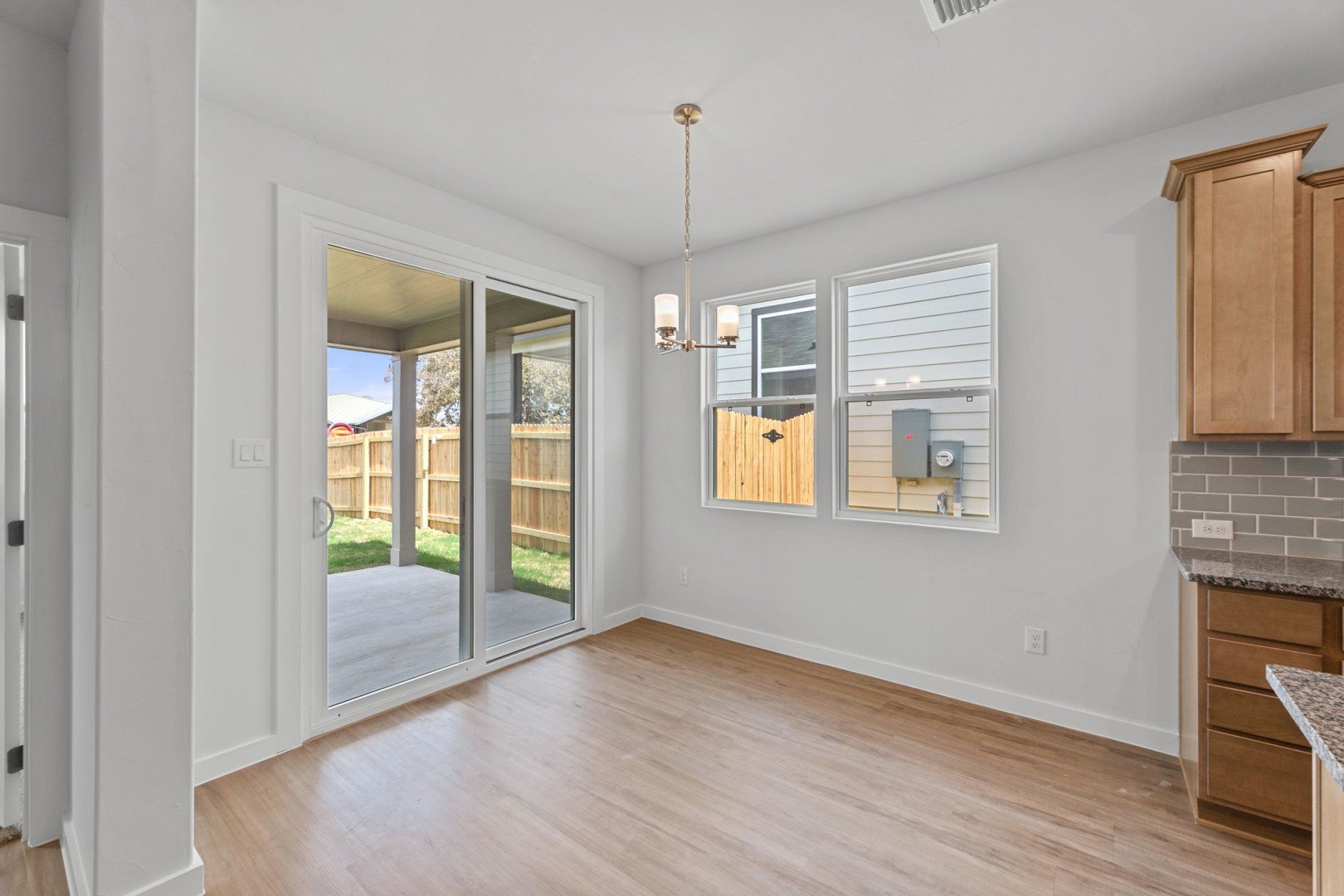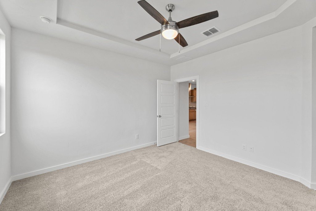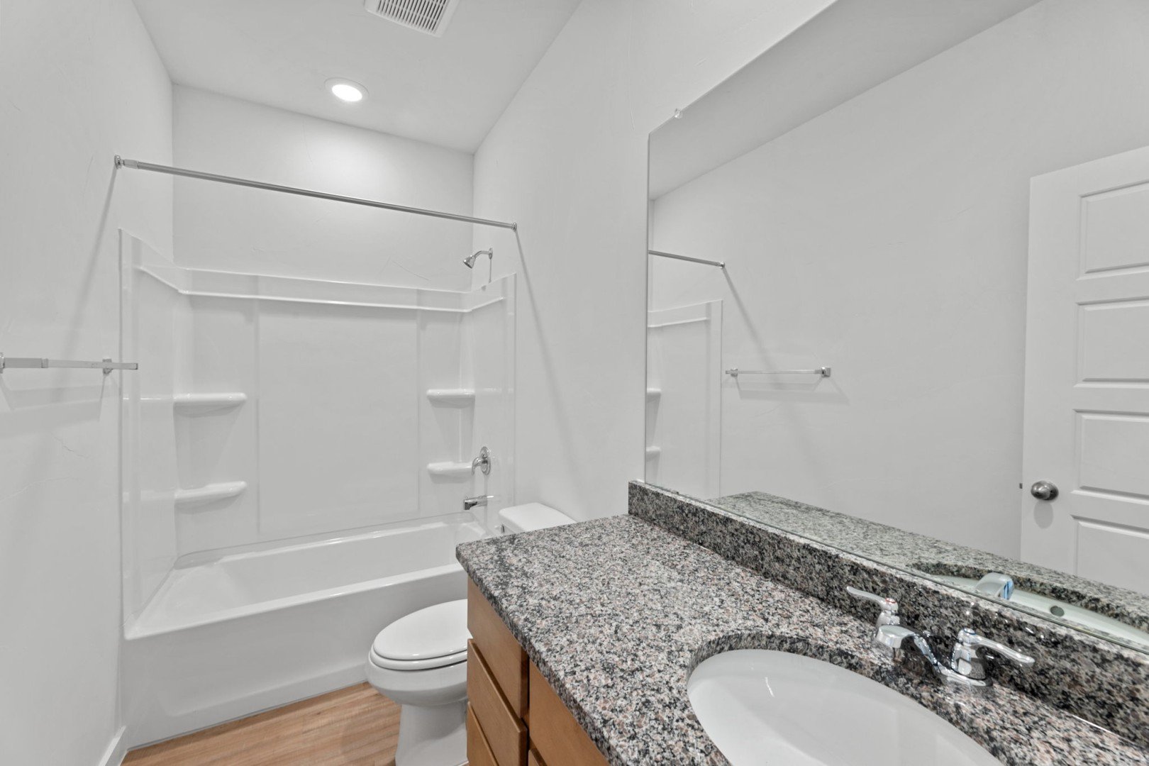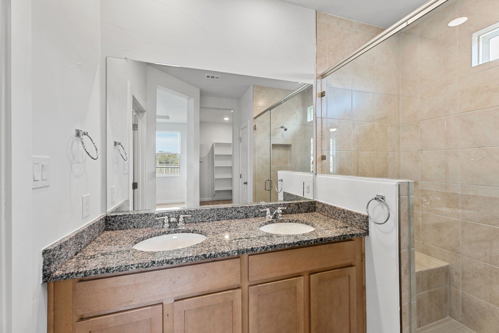 Welcome to the Sabrine, a 1 story, 3 bedroom, 2 bathroom home that blends comfort and convenience. Enter the front door and be welcomed into the open-concept main living area. The spacious Great Room is the perfect backdrop for family gatherings and entertaining guests alike. The kitchen boasts sleek countertops, a large center island, and a corner pantry for optimal space and storage. The adjacent dining room provides easy access to the backyard patio. Tucked away in the back of the home, the master suite offers a private oasis featuring a luxurious ensuite with a double vanity, walk-in shower, and spacious walk-in closet. The two secondary bedrooms and their shared full bedroom are privately located near the entrance of the home, ensuring comfort and seclusion for family members or guests. Additional highlights of the Sabrine include a two-car garage with extra storage space and a covered backyard patio, perfect for enjoying quiet mornings or lively evenings.
