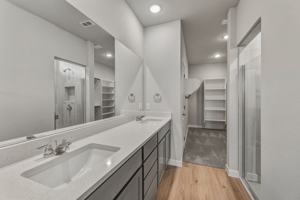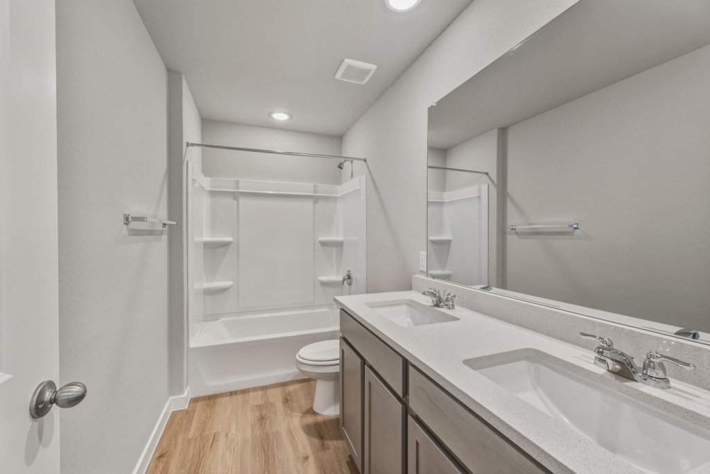 Meet the Hondo - a popular floor plan for ever-growing families. This two-story home provides plenty of space for family members with up to 4 bedrooms, 2.5 bathrooms, a loft or study option, and a 2 car garage. As you enter the Hondo, you'll be welcomed into the spacious main living area perfect for everyday living or special occasions. The luxury kitchen and dining room provides plenty of space for cooking, entertaining, and gathering with a stovetop and vent hood, an island, and a corner pantry providing ample storage. The great room boasts elegant 9' ceilings and provides access to the covered backyard patio. Secluded on the first floor, the master suite stays private and peaceful with a spa-like ensuite featuring dual vanities, a step-in shower, and a large walk-in closet. Upstairs, two secondary bedrooms and their accompanying full bathroom seclude guests or family. The large upstairs loft may be converted into a bedroom or study.