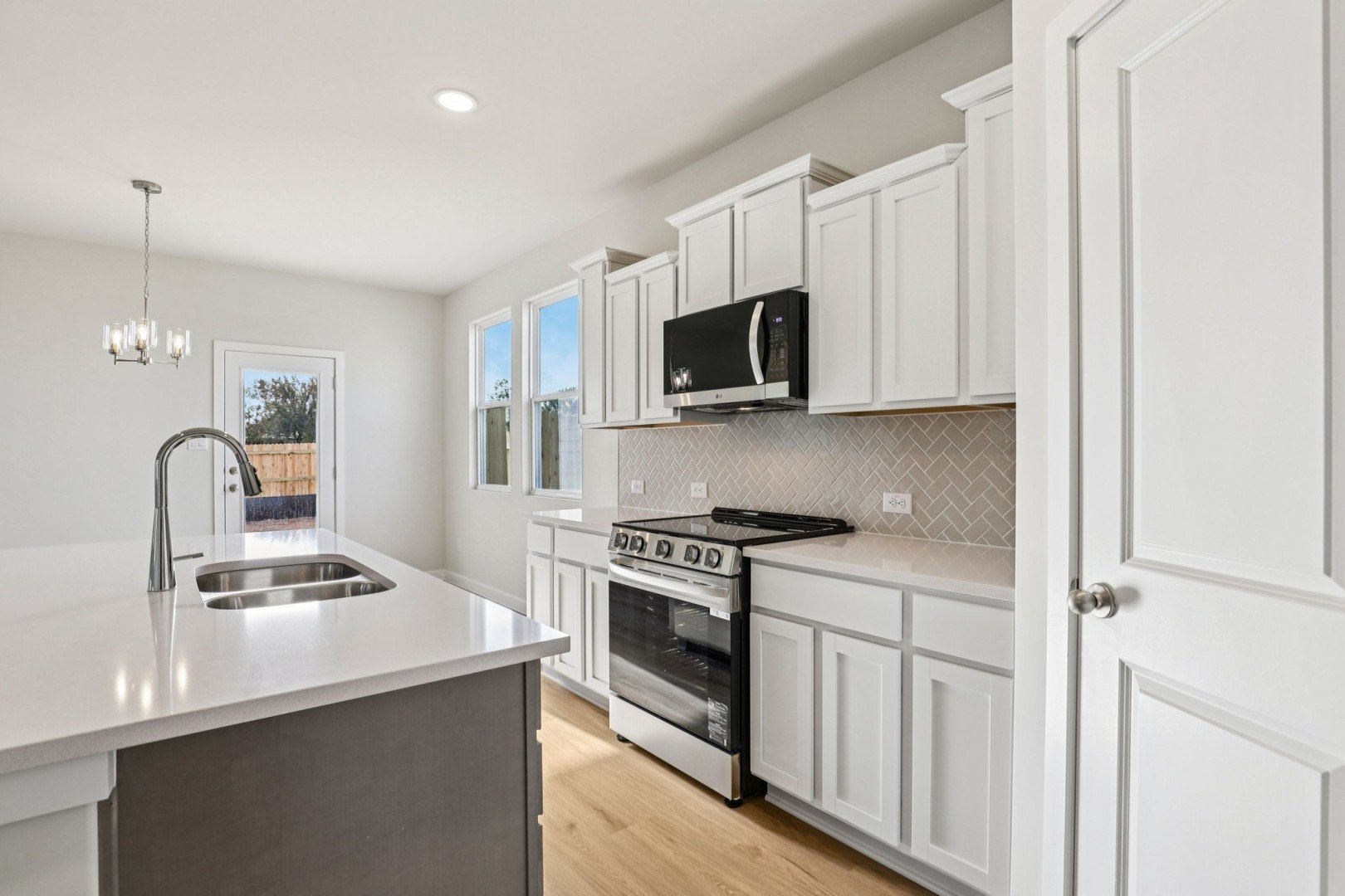Welcome to the Sabrine, a 1 story, 3 bedroom, 2 bathroom home that blends comfort and convenience. Enter the front door and be welcomed into the open-concept main living area. The spacious Great Room is the perfect backdrop for family gatherings and entertaining guests alike. The kitchen boasts sleek countertops, a large center island, and a corner pantry for optimal space and storage. The adjacent dining room provides easy access to the backyard patio. Tucked away in the back of the home, the master suite offers a private oasis featuring a luxurious ensuite with a double vanity, walk-in shower, and spacious walk-in closet. The two secondary bedrooms and their shared full bedroom are privately located near the entrance of the home, ensuring comfort and seclusion for family members or guests. Additional highlights of the Sabrine include a two-car garage with extra storage space and a covered backyard patio, perfect for enjoying quiet mornings or lively evenings.