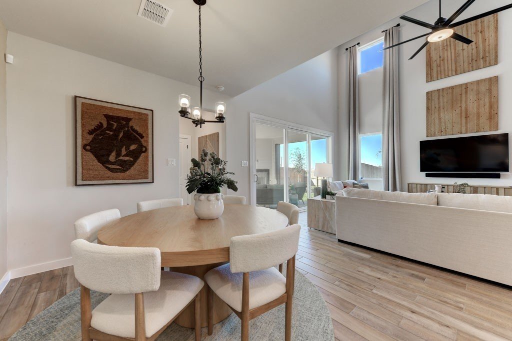 The Bandera pairs modern style with smart functionality across two spacious stories. A welcoming entry leads to a flexible first-floor room ideal as a home office, playroom, or bonus living space. At the center of the home, the open kitchen and great room create a bright, connected gathering area with sleek countertops, a large island, and plenty of cabinetry for storage.