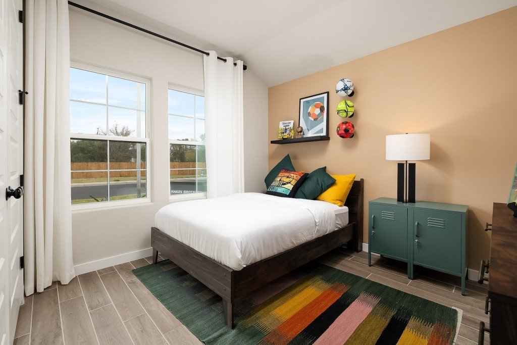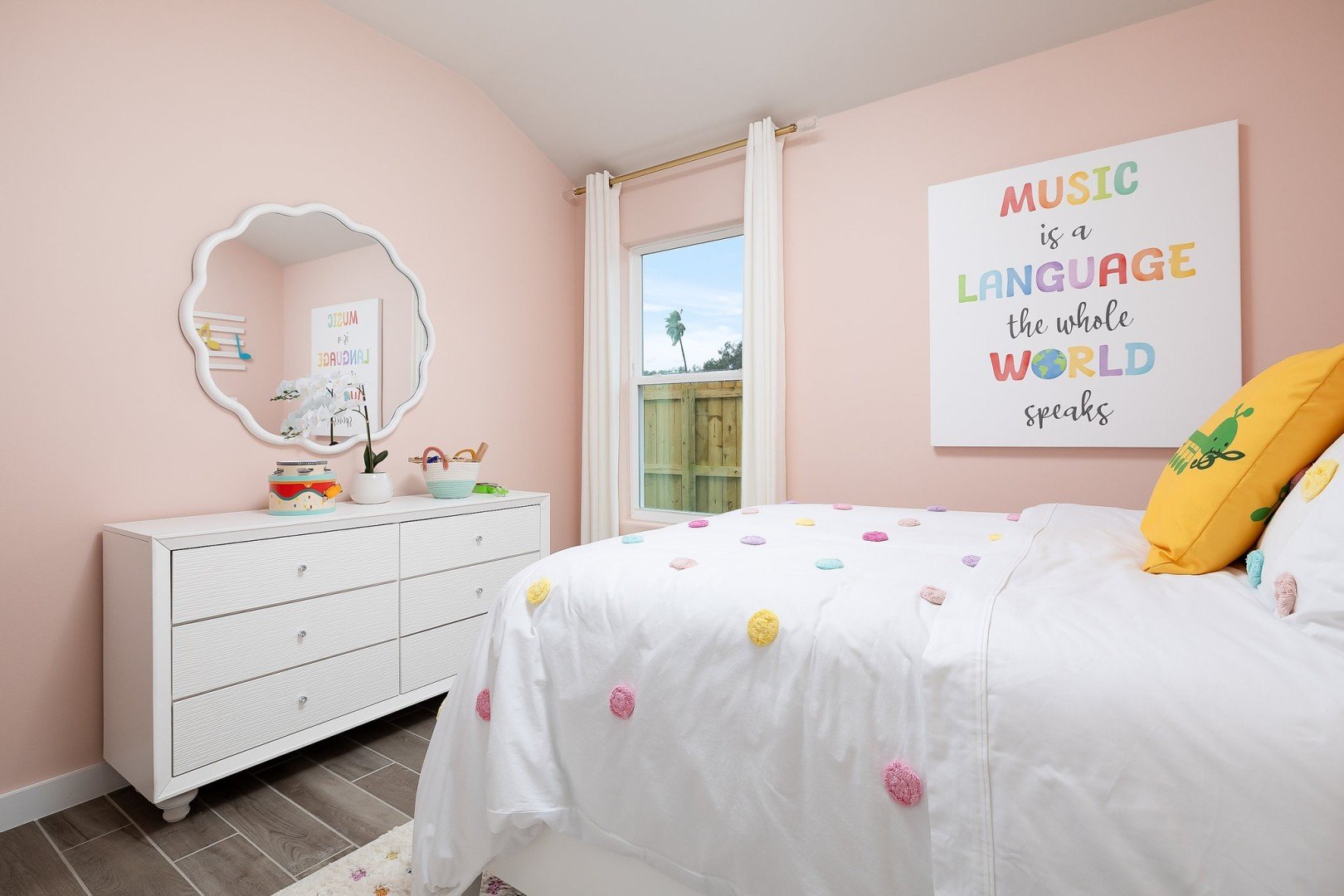 The private owner’s suite is a peaceful retreat complete with a spa-inspired bath, walk-in shower, and a large walk-in closet. Three secondary bedrooms are located in their own wing, providing flexibility for guests, family members, or a home office. A convenient laundry room and two-car garage round out this functional, family-friendly design.