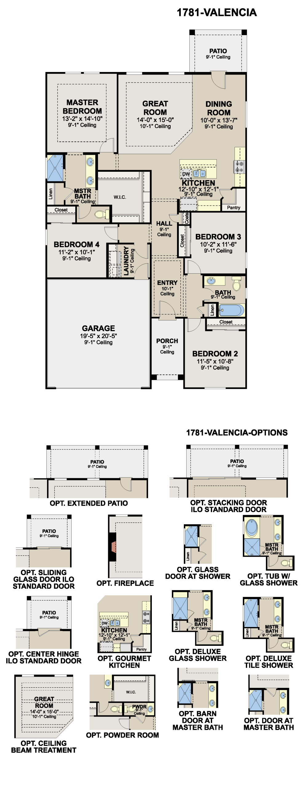 - Options available, including a gourmet kitchen, fireplace, or extended patio
